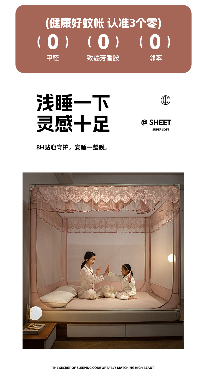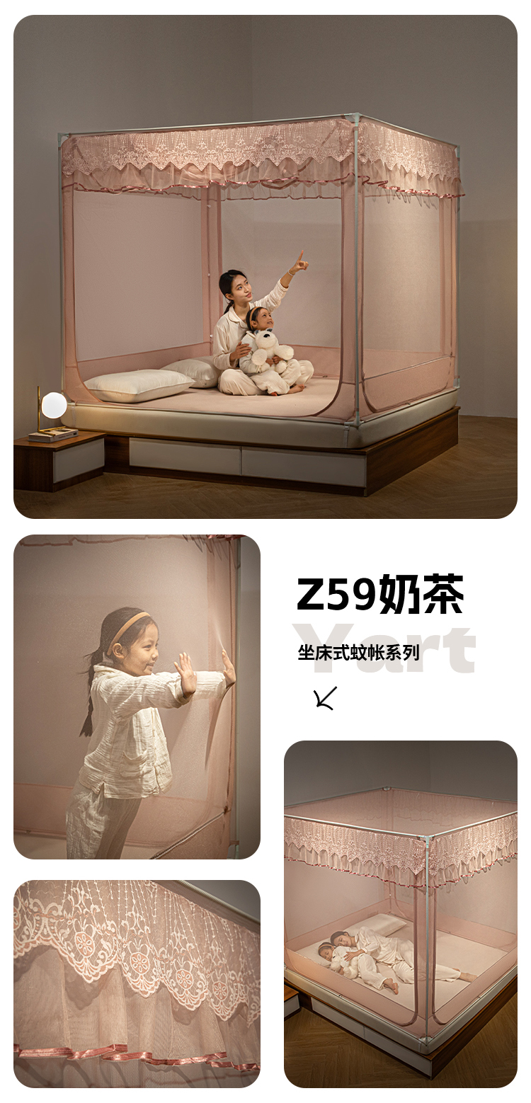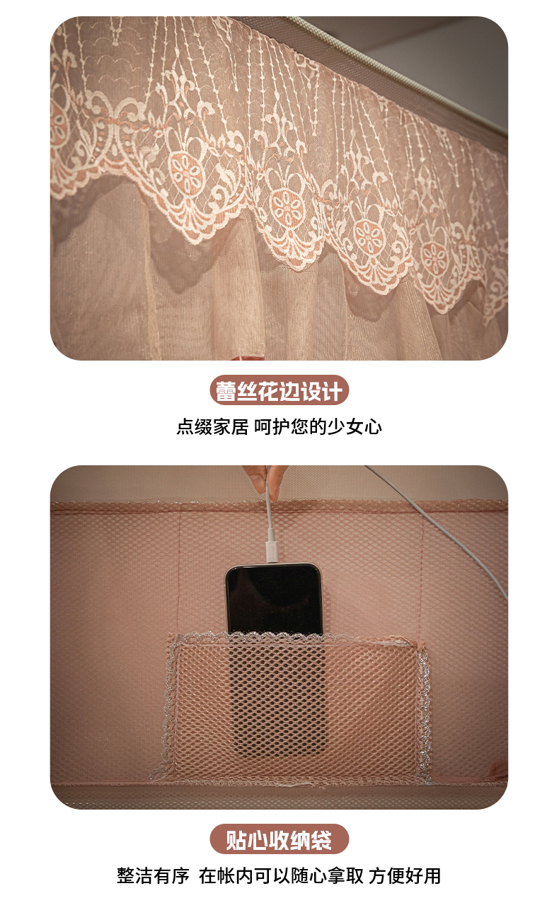 飞轮海蚊帐 2025新款蕾丝花边坐床蚊帐系列 Z59奶茶实拍