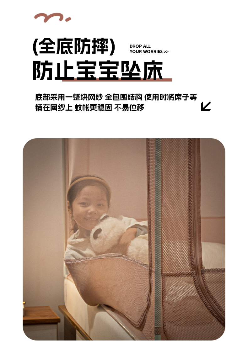 (总)飞轮海蚊帐 2025新款三开门方顶花边防摔遮光蚊帐-Z39,你好蛙,不许动,快乐家族,生活有趣,熊猫宝