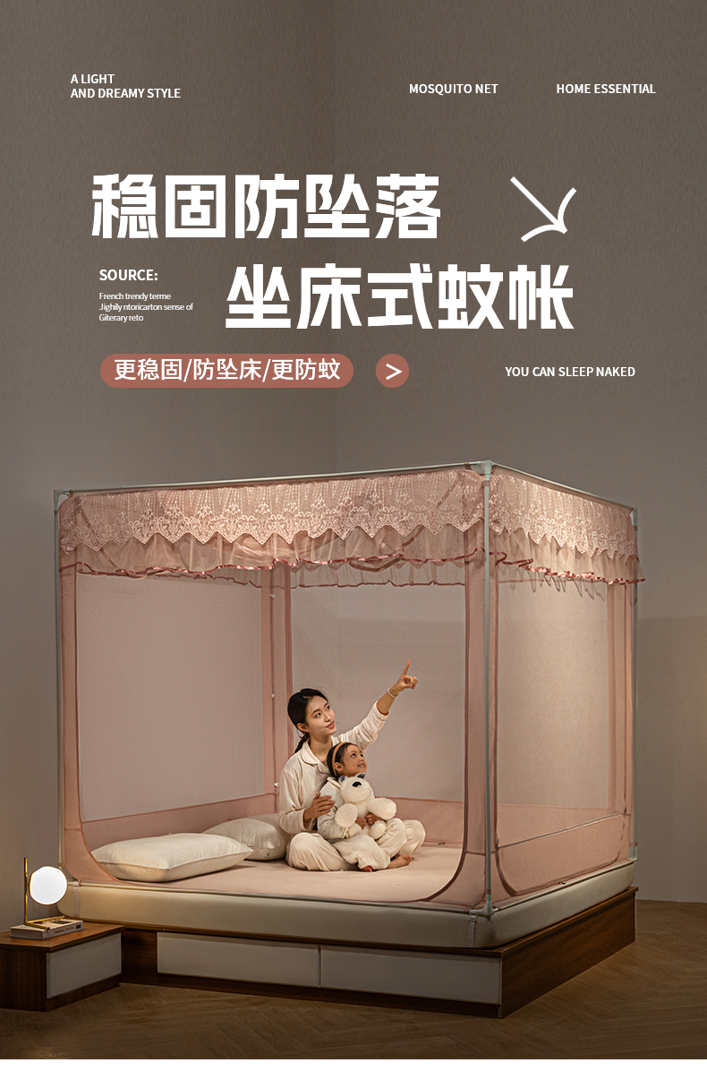 商品名称:飞轮海蚊帐 2025新款蕾丝花边坐床蚊帐系列 Z59奶茶实拍