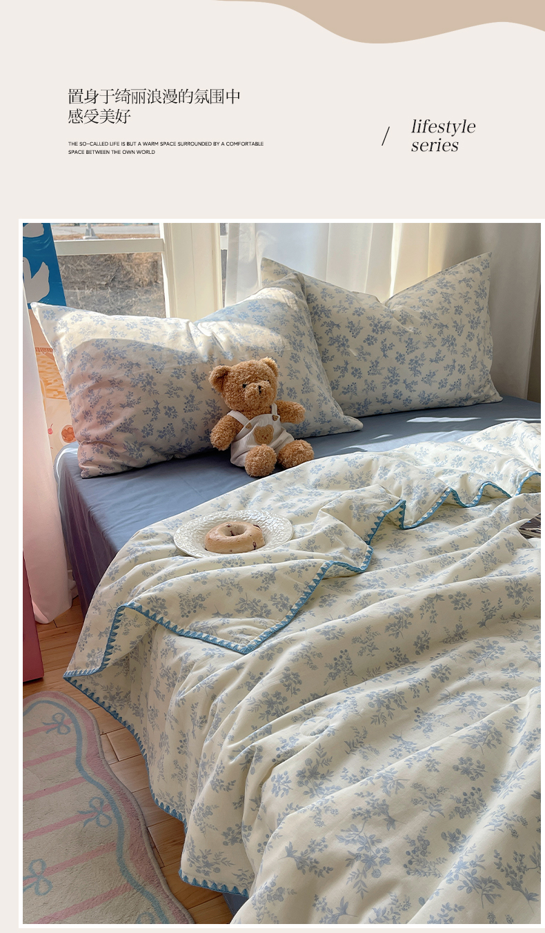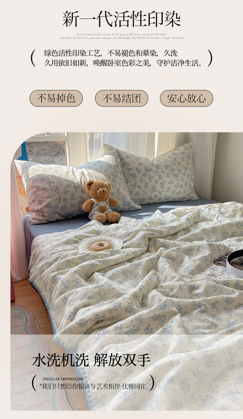 • 91家纺网 家纺一手货源 找家纺 一加一 2025A类全棉有氧双层纱印花夏被 春风里