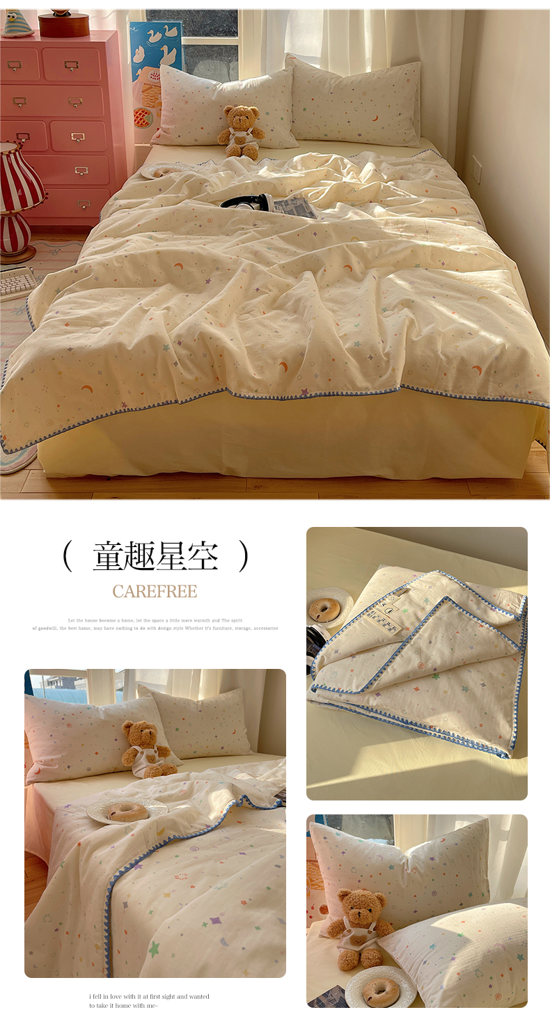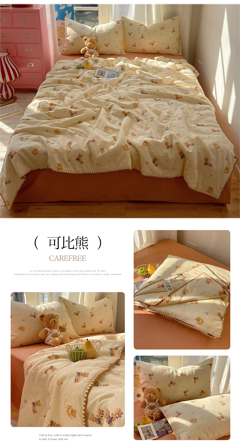 (总)一加一 2026新款全棉活性印花立体花边大豆夏被夏凉被空调被四件套,组合图仅供展示不可下单,绿芜汀,泡泡小象,浅茶春樱,浅纹蓝,浅星纱,蔷薇凝,微花耳耳,小镇漫游记,星花结,杏仁小熊仔