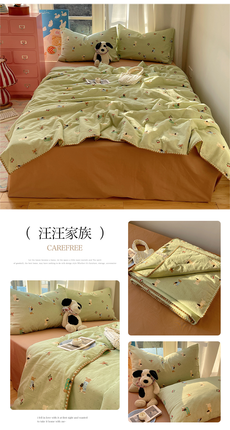 (总)一加一 2026新款全棉色织水洗棉毛巾绣大豆夏被夏凉被空调被四件套-闲趣小熊,闲趣小熊-格小蓝,闲趣小熊-格小绿,闲趣小熊-格小米