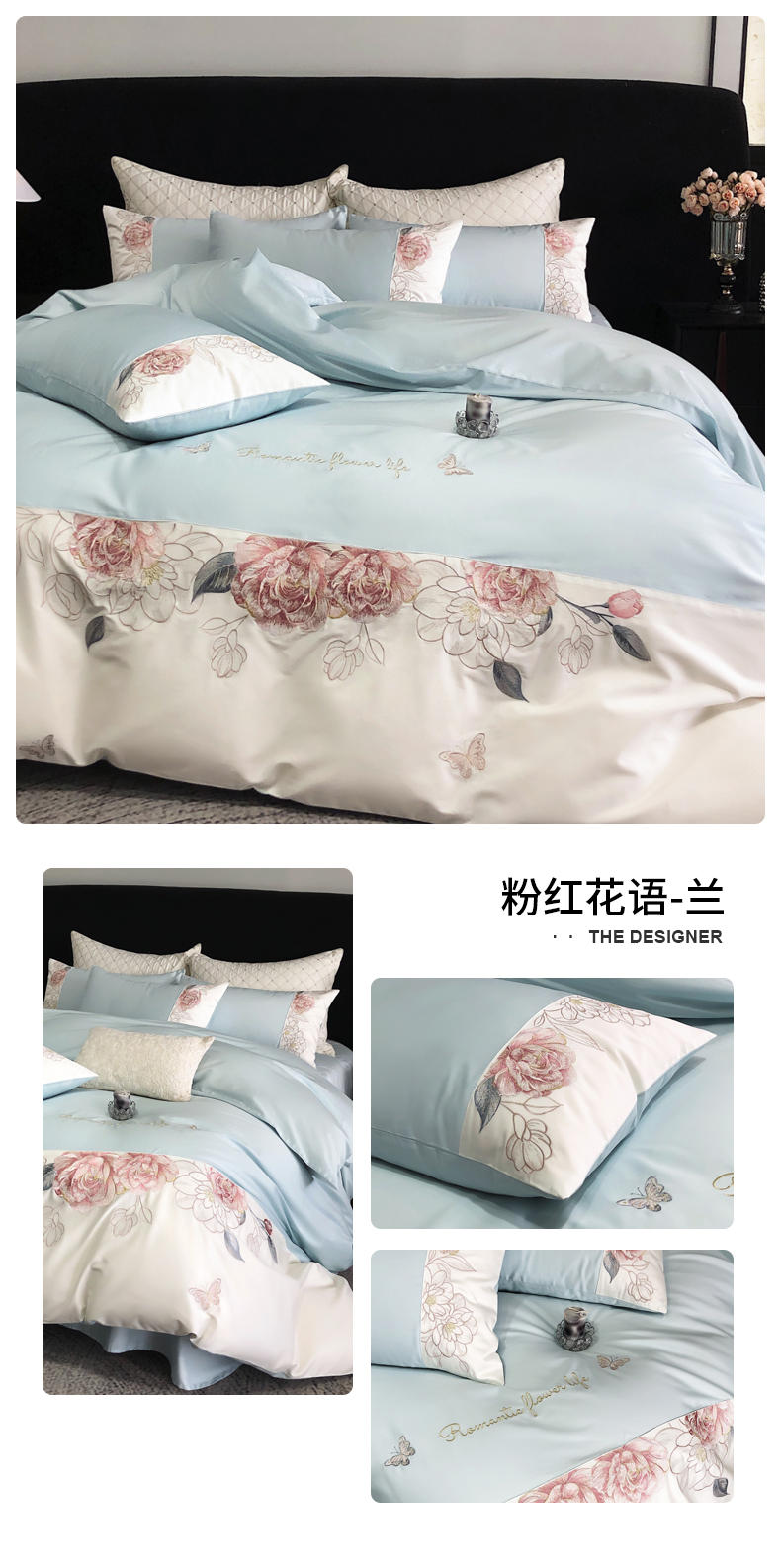慕晨家纺 2025新款40s全棉重工刺绣四件套 粉红花语 兰