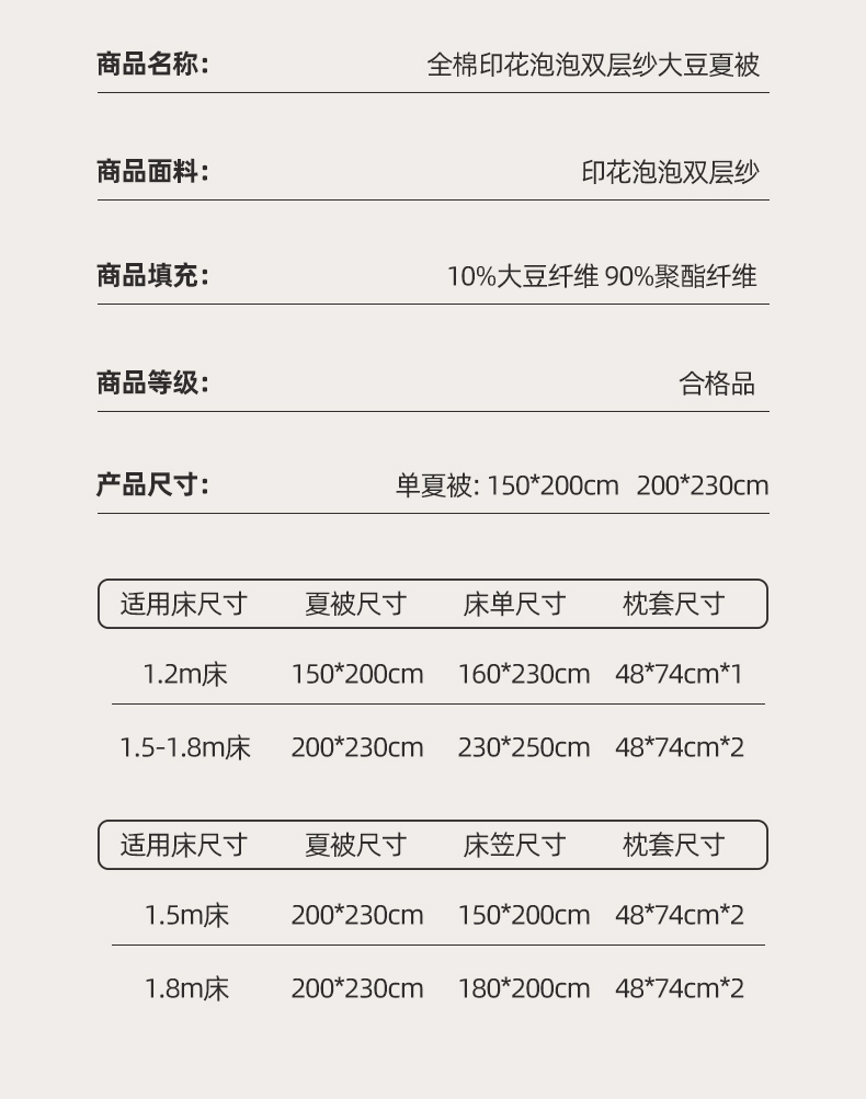 商品名称:吾诺 2025新建全棉印花泡泡双层纱大豆夏被子被芯全棉夏被四件套夏凉被空调被 锦素