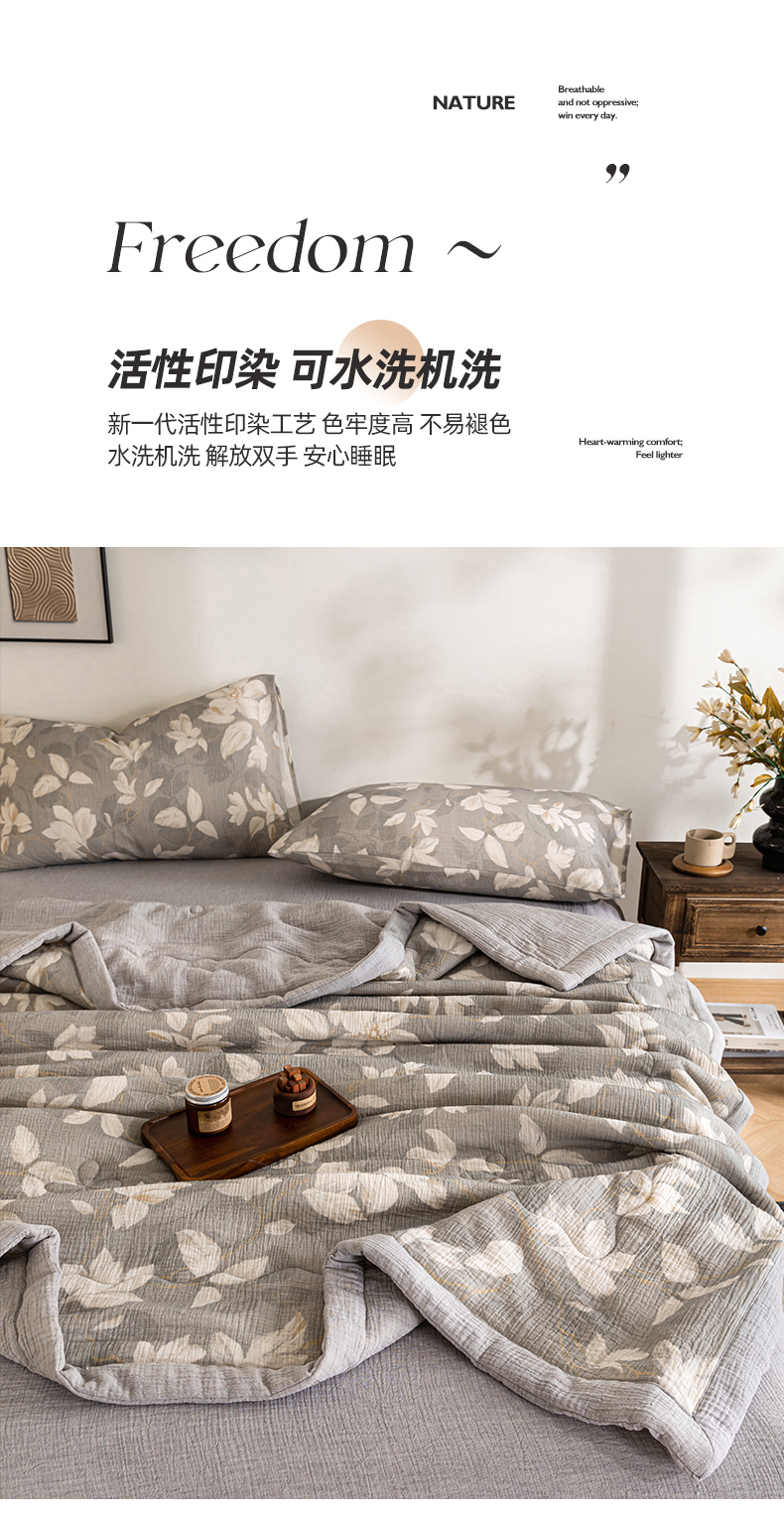 (总)吾诺家居 2026新款全棉色织提花三层纱夏被夏凉被空调被-华美,波点-灰,芳菲-咖,花影-绿,简森-灰,恋恋花开,萌宝,梦幻花园-粉,梦幻花园-灰,太阳花,藤叶-咖,香水繁花-绿