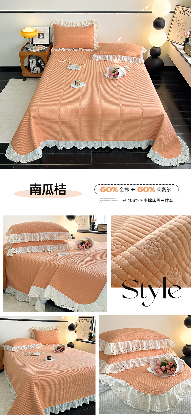 (总)沐纯家居 2024新款纯色天丝床盖,南瓜橘,水绿,浅蓝,蓝灰色,蜜桃粉,高贵紫