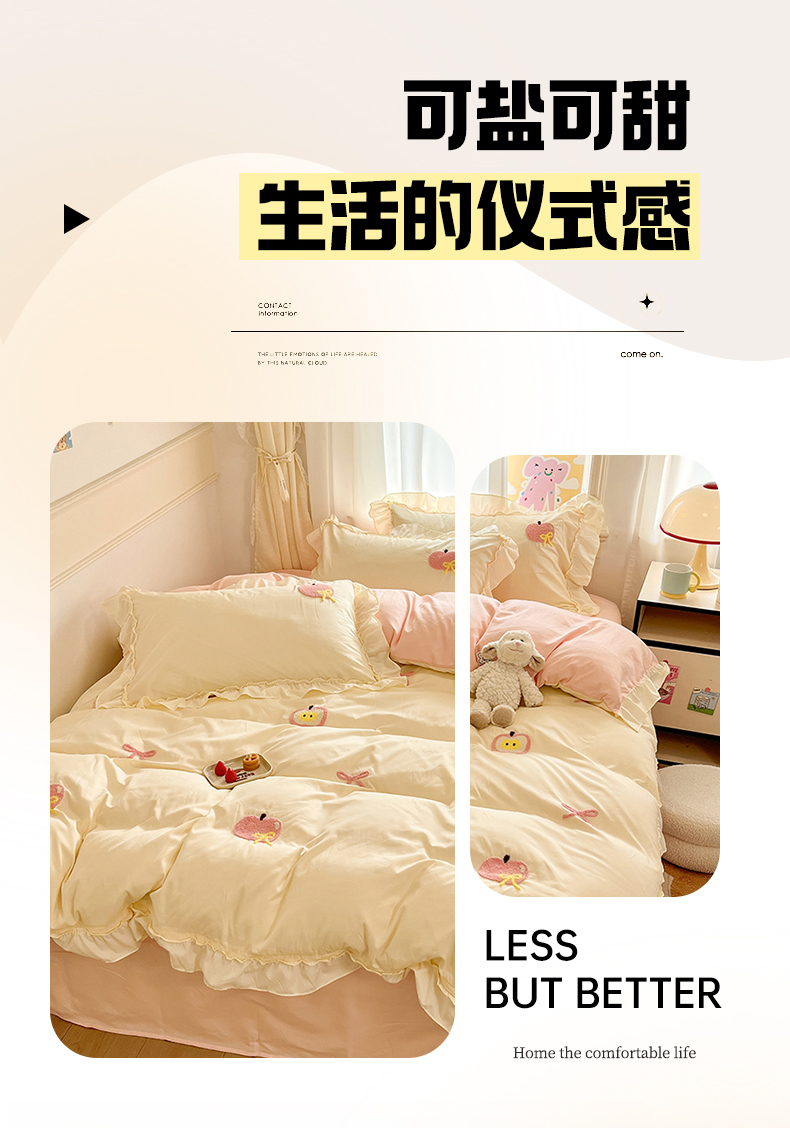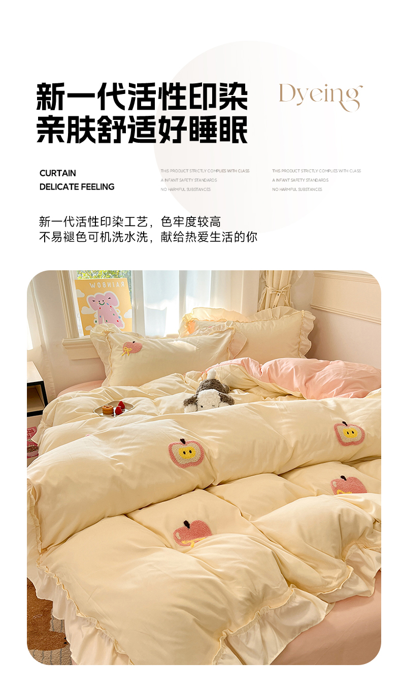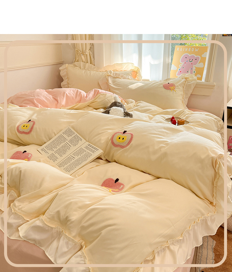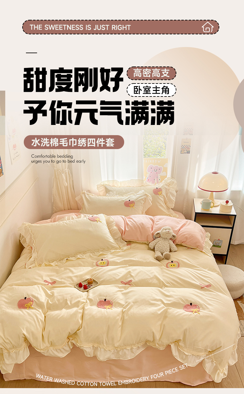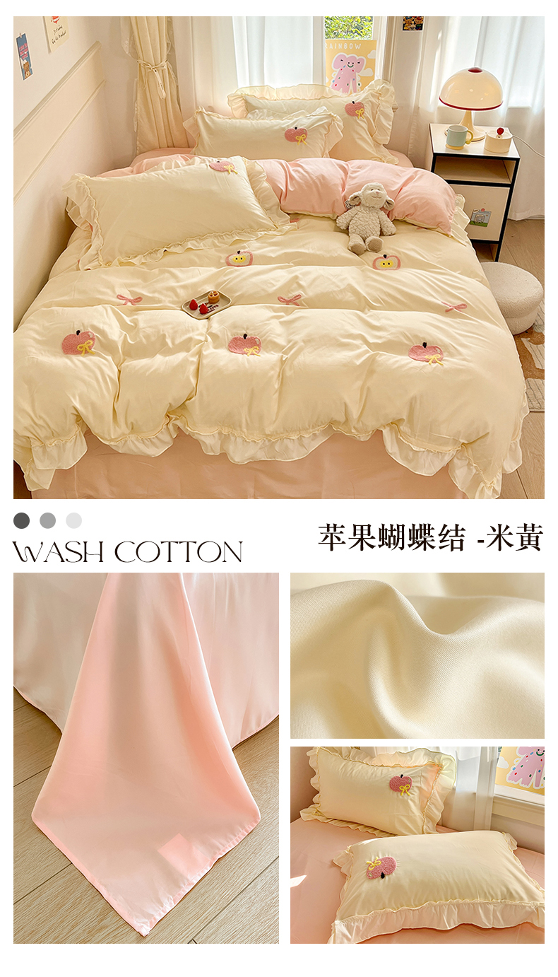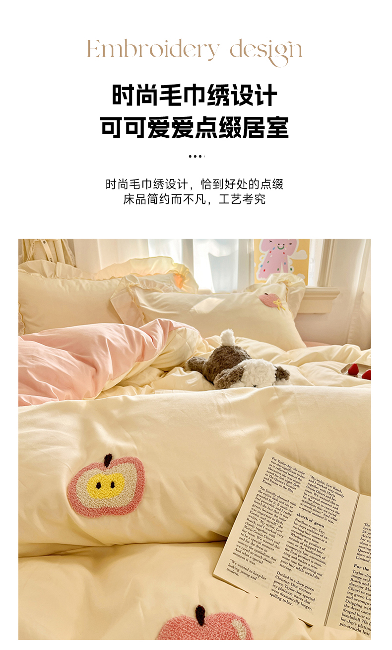 当前位置: 91家纺网 > 商品网购 > 床品套件 > 四件套 > 水洗棉四件套 > 我心家纺 2025新款水洗棉毛巾绣四件套-苹果系列 苹果蝴蝶结 -米黄