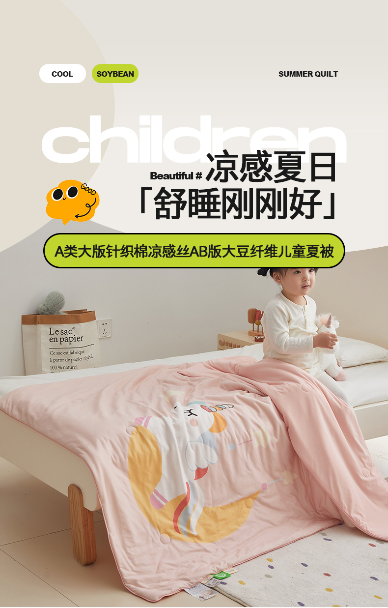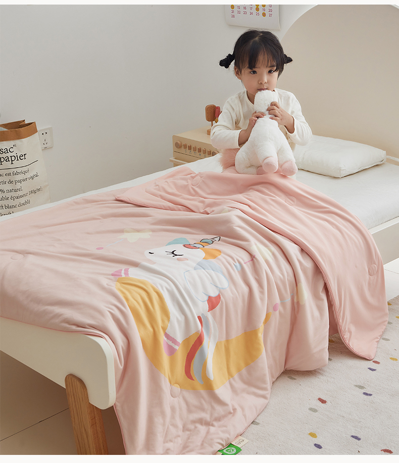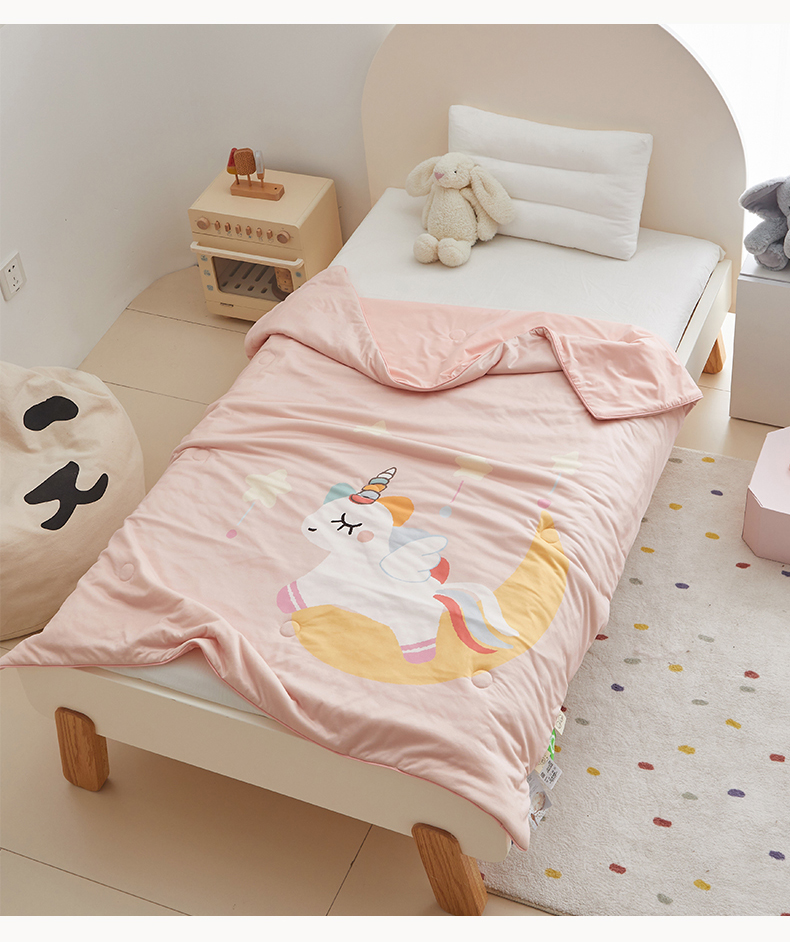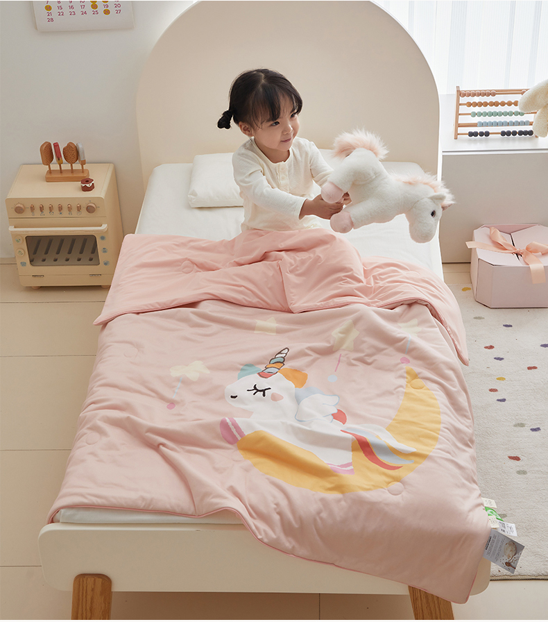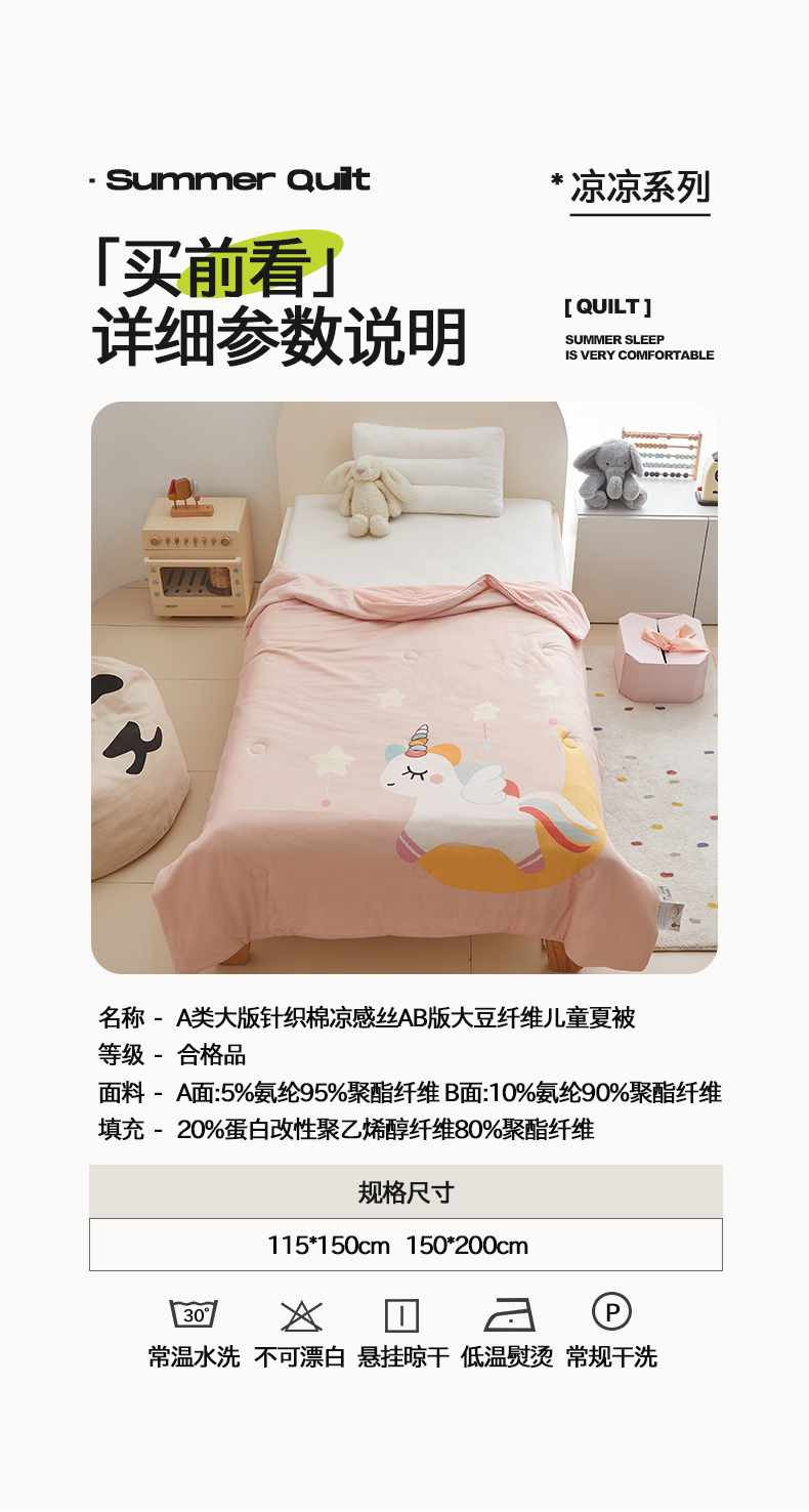 商品名称:荷马之梦 2025新款大版针织棉凉感丝AB版大豆儿童夏被 月亮独角兽