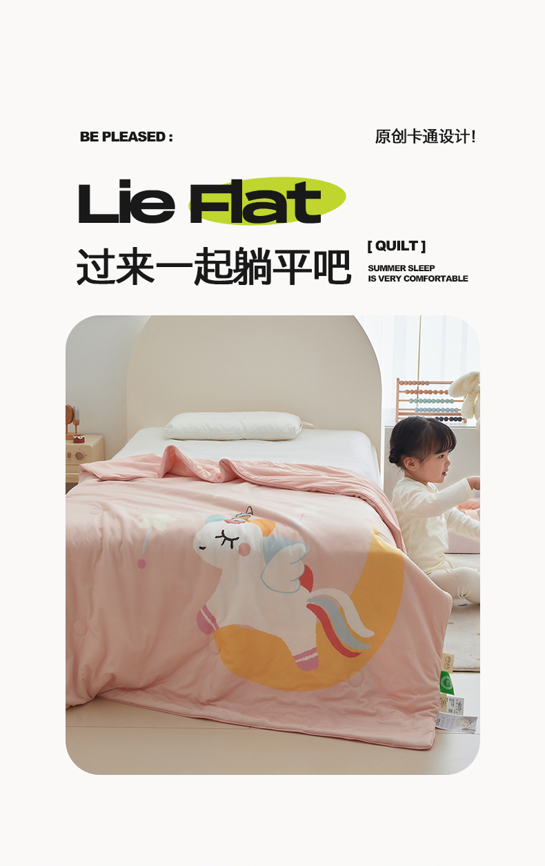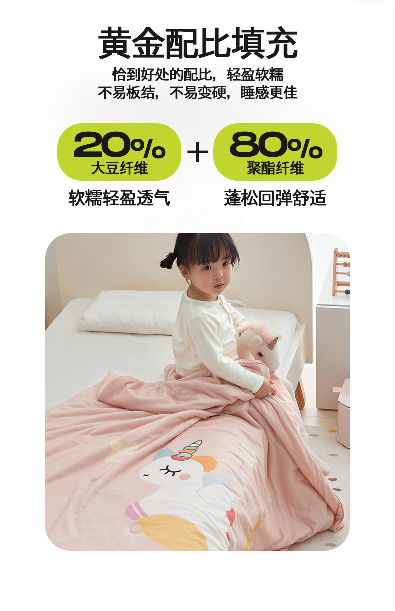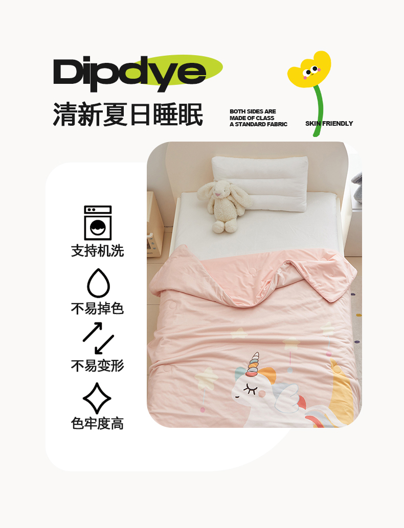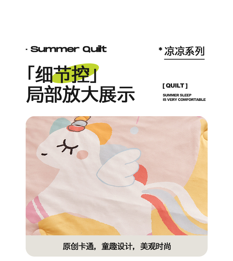 商品名称:荷马之梦 2025新款大版针织棉凉感丝AB版大豆儿童夏被 月亮独角兽