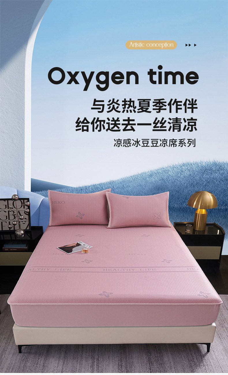 (总)梵克保罗 2025新款7A抗菌母婴级纯乙纶PE刺绣凉感丝豆豆席 床笠款