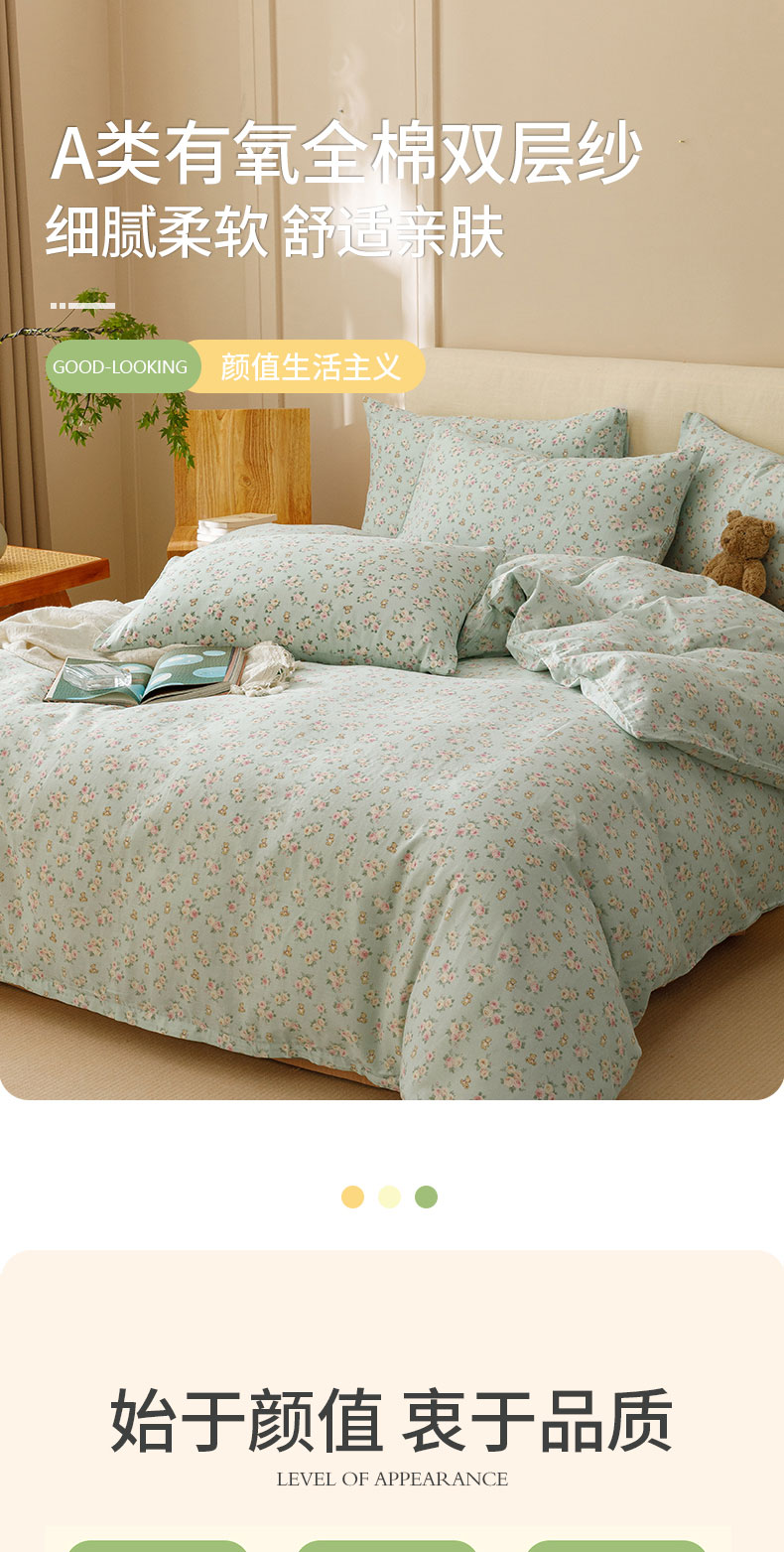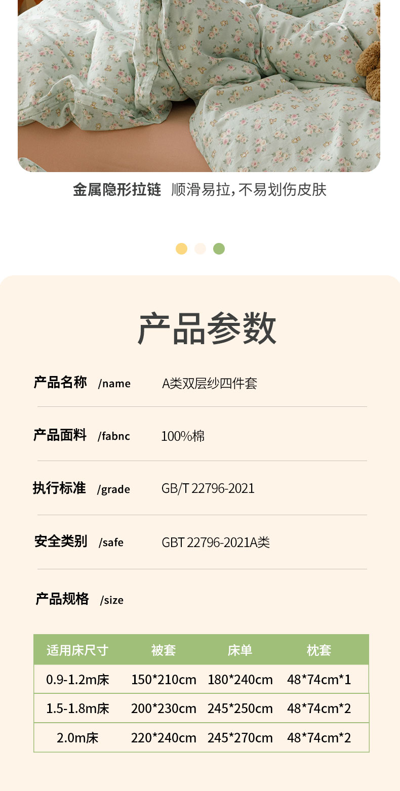商品名称:瑞米家居 2024新款亲肤舒适A类双层纱四件套 花晨