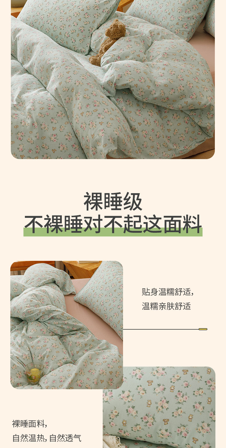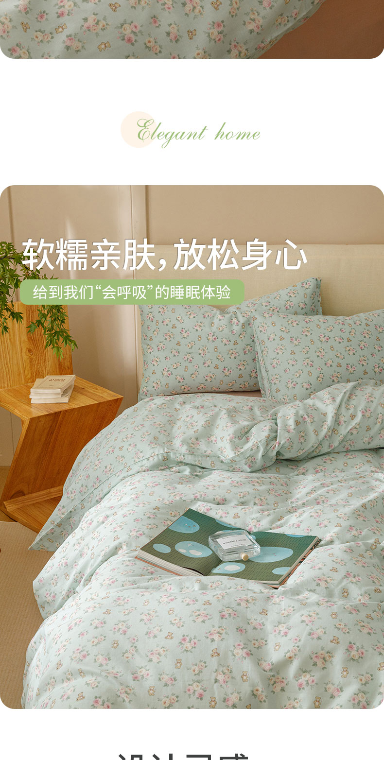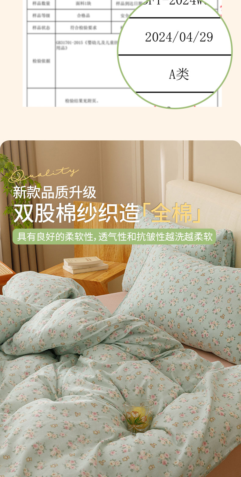 (总)瑞米家居 2024新款亲肤舒适A类双层纱四件套,草莓甜心,格子熊猫,花晨,花园小兔,绿意盎然,浅忆,苏夏,田园印象,甜蜜樱桃
