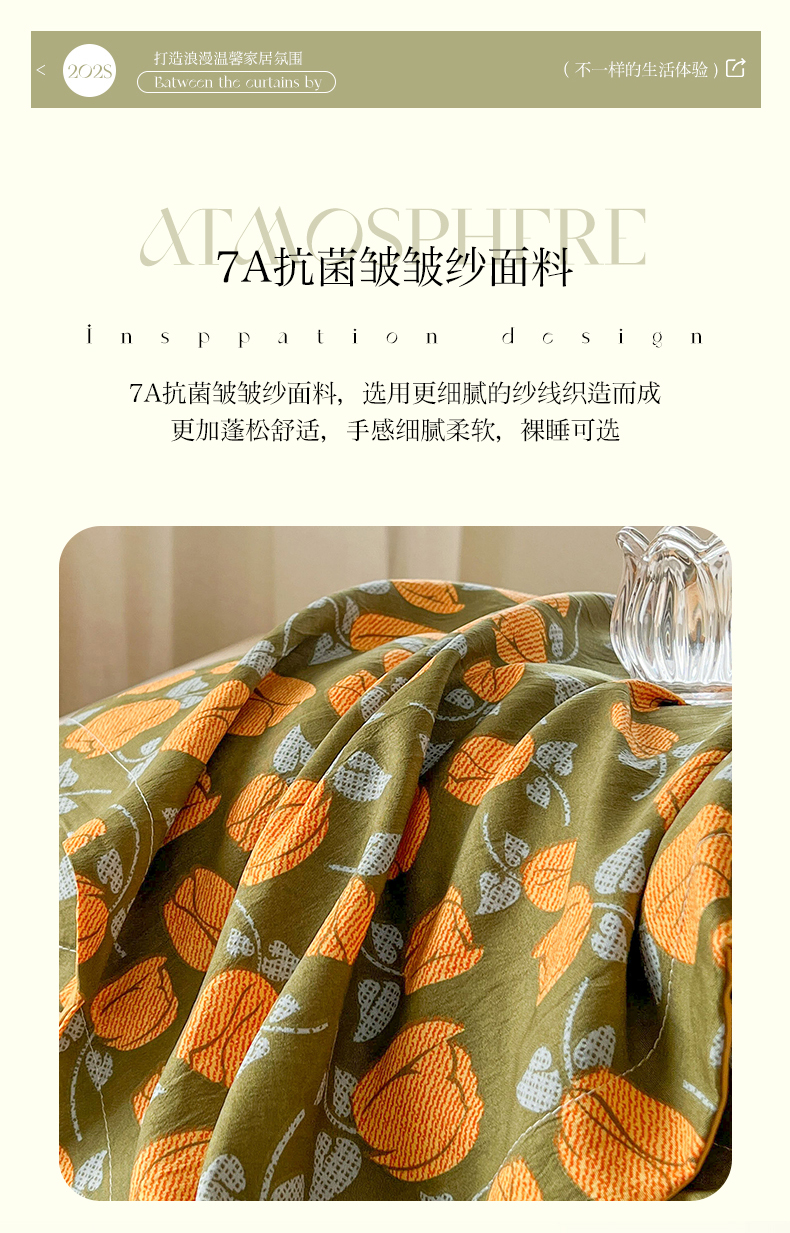 商品名称:欢乐季 2025新款7A抗菌双层皱皱纱大豆夏被夏凉被空调被 (可以开发票—专票8个点) 郁金香