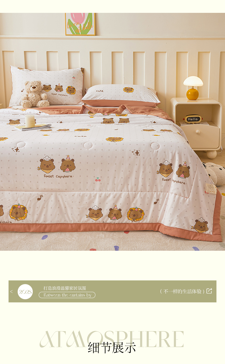 商品名称:欢乐季 2025新款7A抗菌双层皱皱纱大豆夏被夏凉被空调被 卡皮巴拉