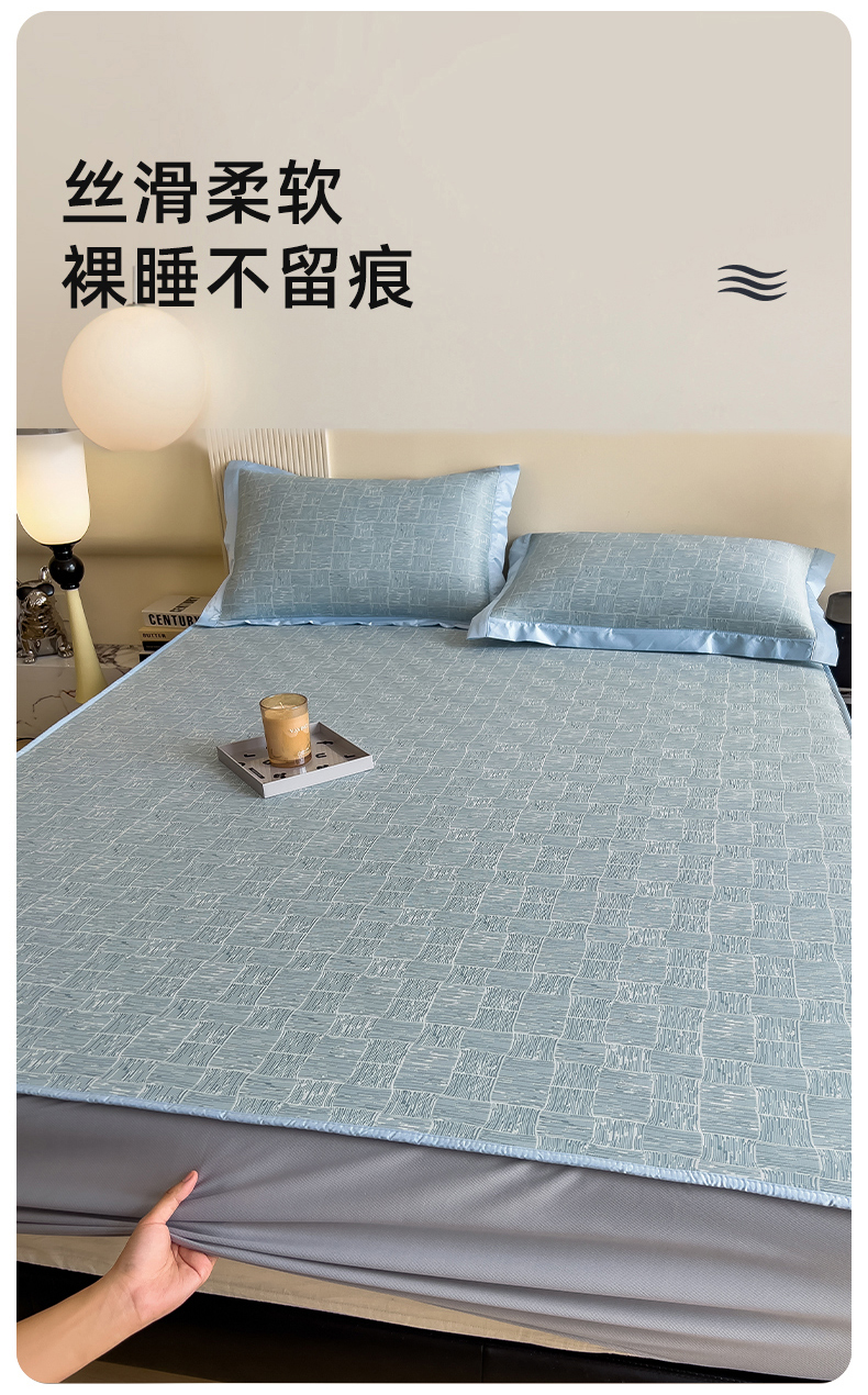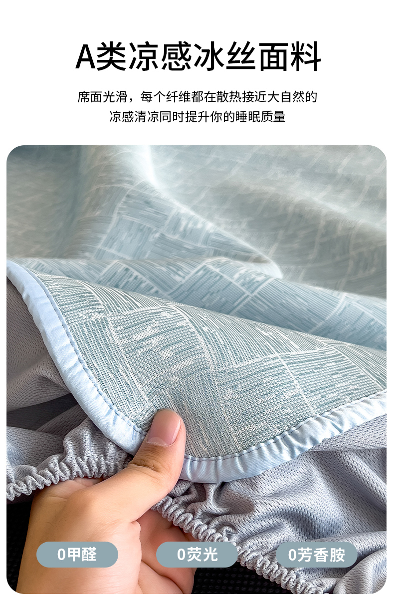 商品名称:孩子王家纺 2025新款轻柔丝凉席冰丝席-斑斓系列 床笠款-冰川粉