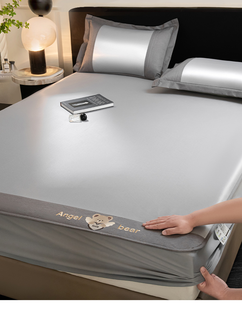 孩子王家纺 2025新款轻柔丝凉席冰丝席-欢乐熊系列 床笠款-高级灰