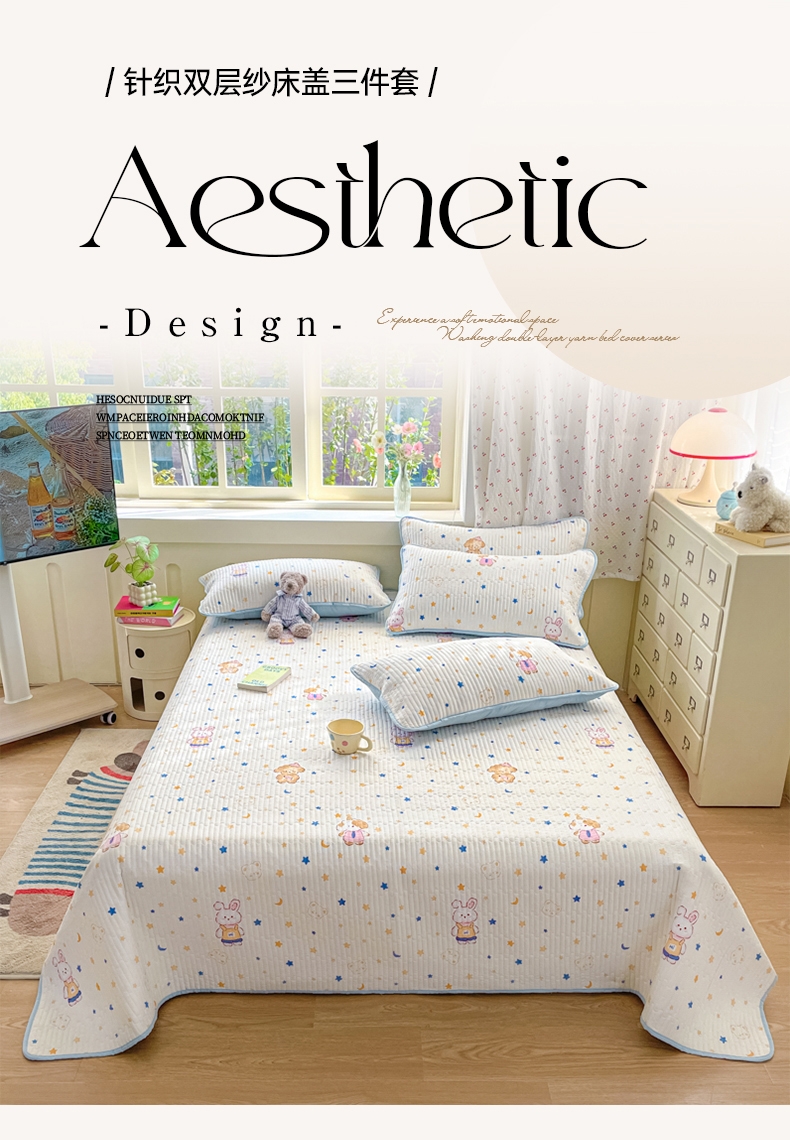 商品名称:857家居 2025新款针织双层纱床盖三件套 梦幻星辰