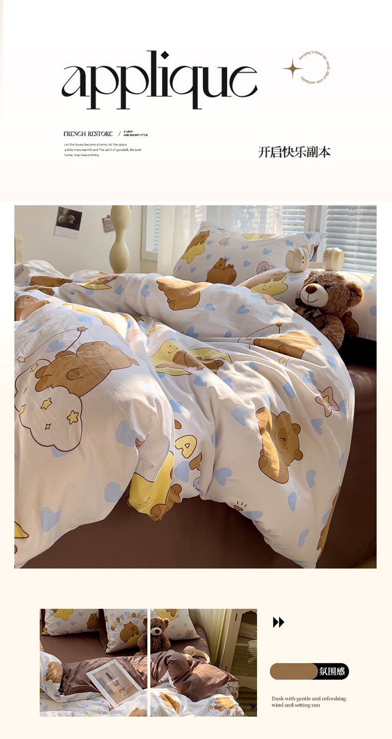 当前位置: 91家纺网 > 商品网购 > 床品套件 > 四件套 > 水洗棉四件套 > 悦织湾家纺2025新款高克重卡通水洗棉印花四件套学生宿舍单双人床上用品三四件套 卡通-甜心小熊