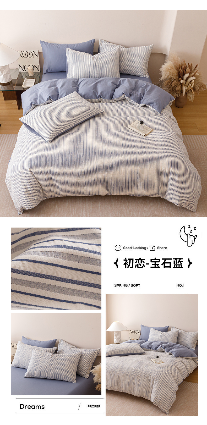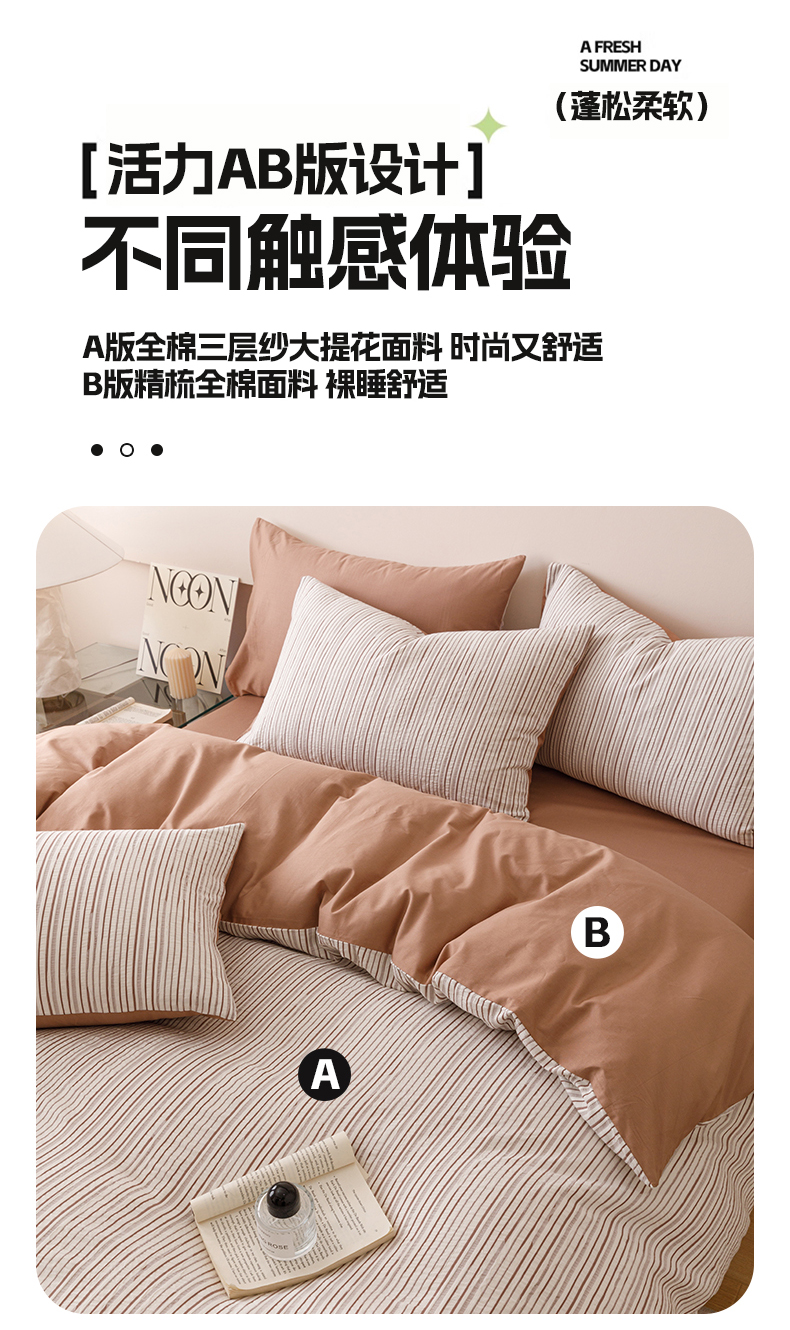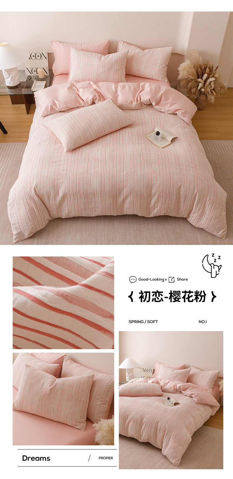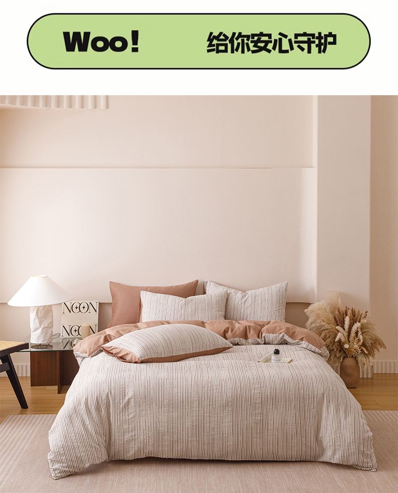 (总)忆生活家纺 2025新款全棉三层纱色织大提花条纹款四件套,初恋-樱花粉,初恋-宝石蓝,初恋-抹茶绿,初恋-奶咖色,初恋-太空灰