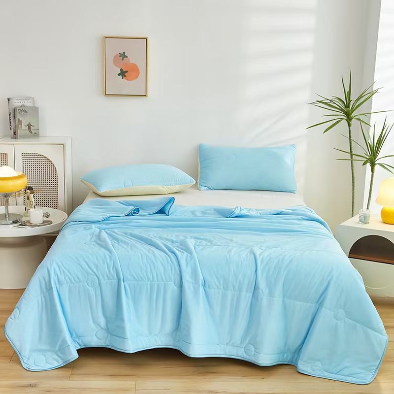 商品名称:柏薇 2025新款纯色冰激凌凉感丝夏凉被空调被 冰激凌夏被-月光蓝