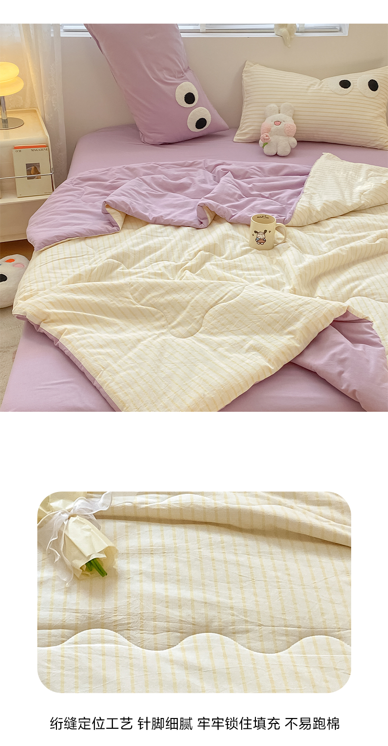 (总)贝扬思家纺 2025新款三丽鸥简约条纹夏被夏凉被空调被套件系列,奶油条kt粉粉,奶油条kt粉黄,奶油条kt黄黄,奶油条kt蓝蓝,奶油条kt紫紫