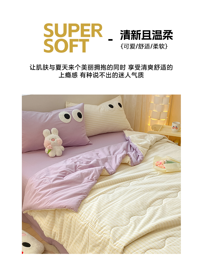 贝扬思家纺 2025新款超柔110克云朵棉系列夏被四件套 紫薯糕