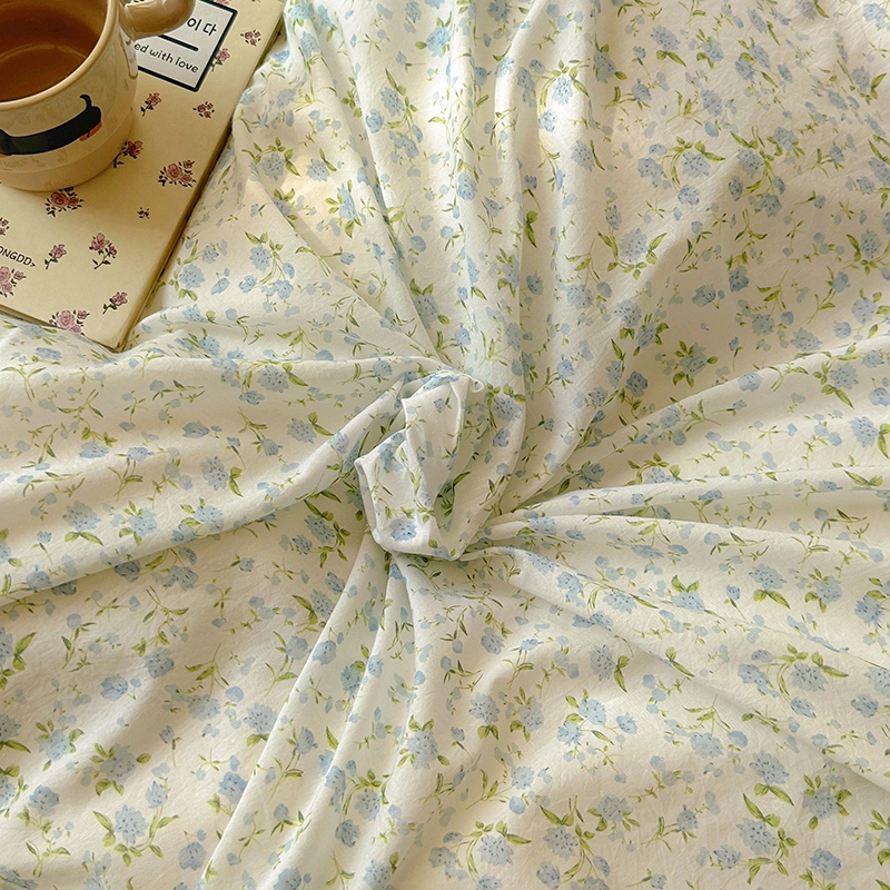 商品名称:昊川 2025新款60支全棉双层纱酵素高温砂洗法式床盖 兰色小碎花