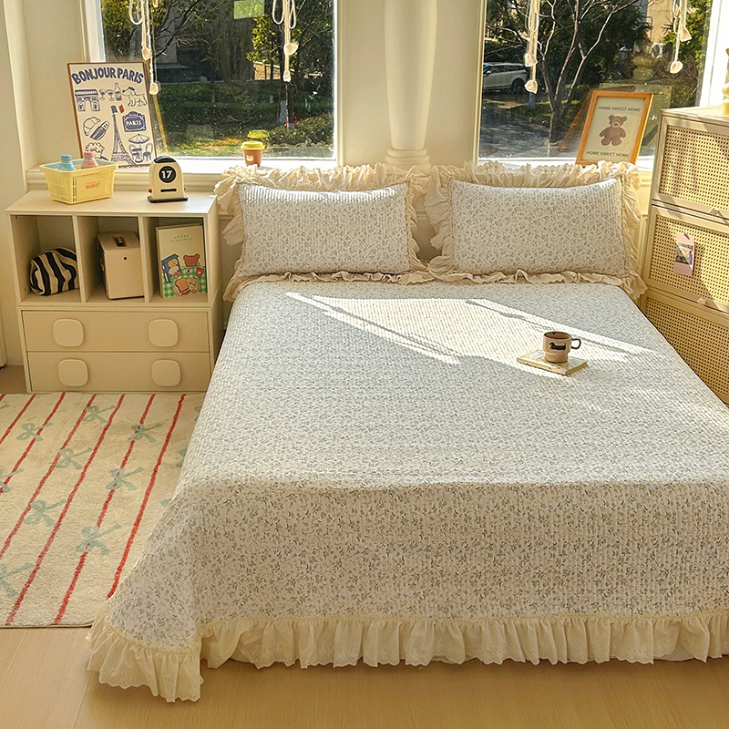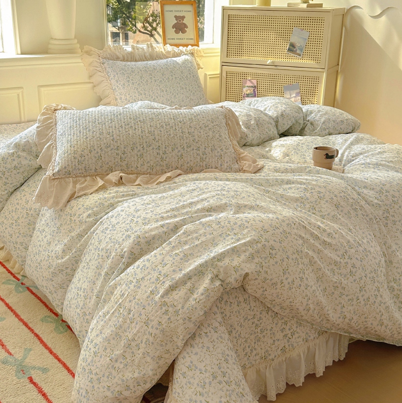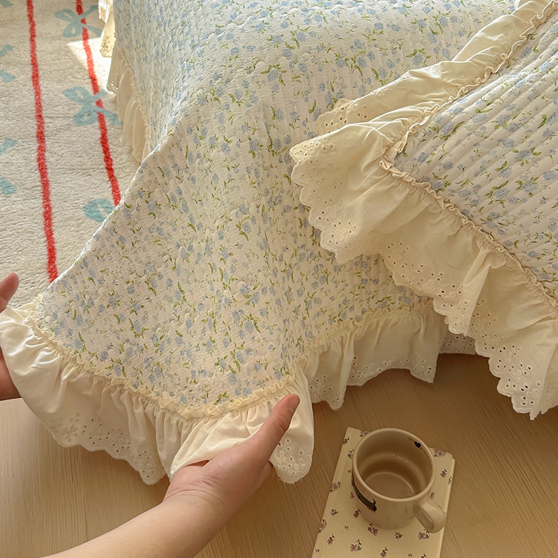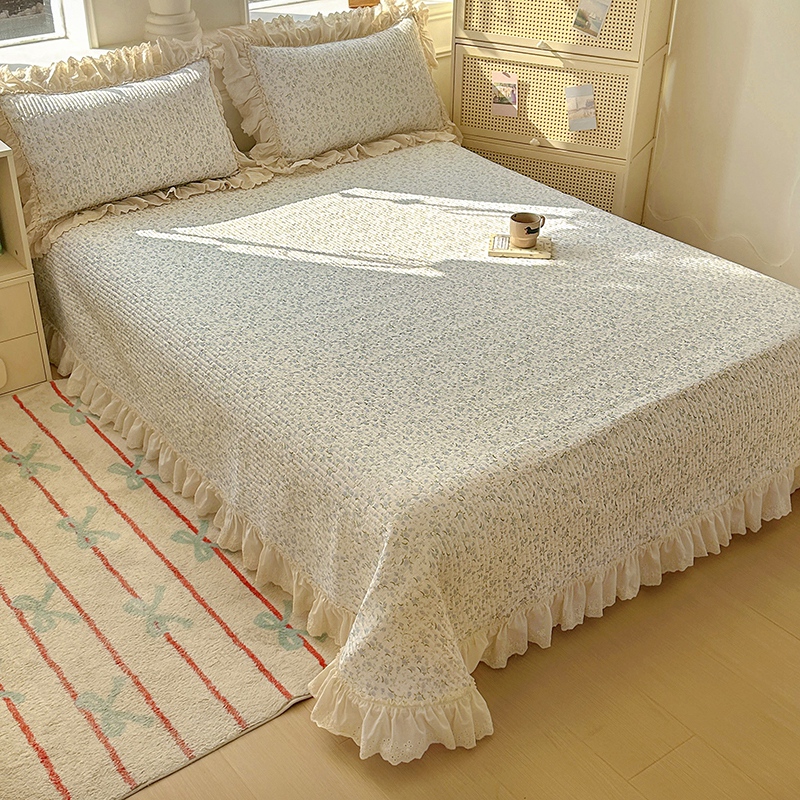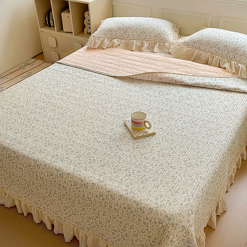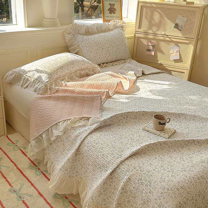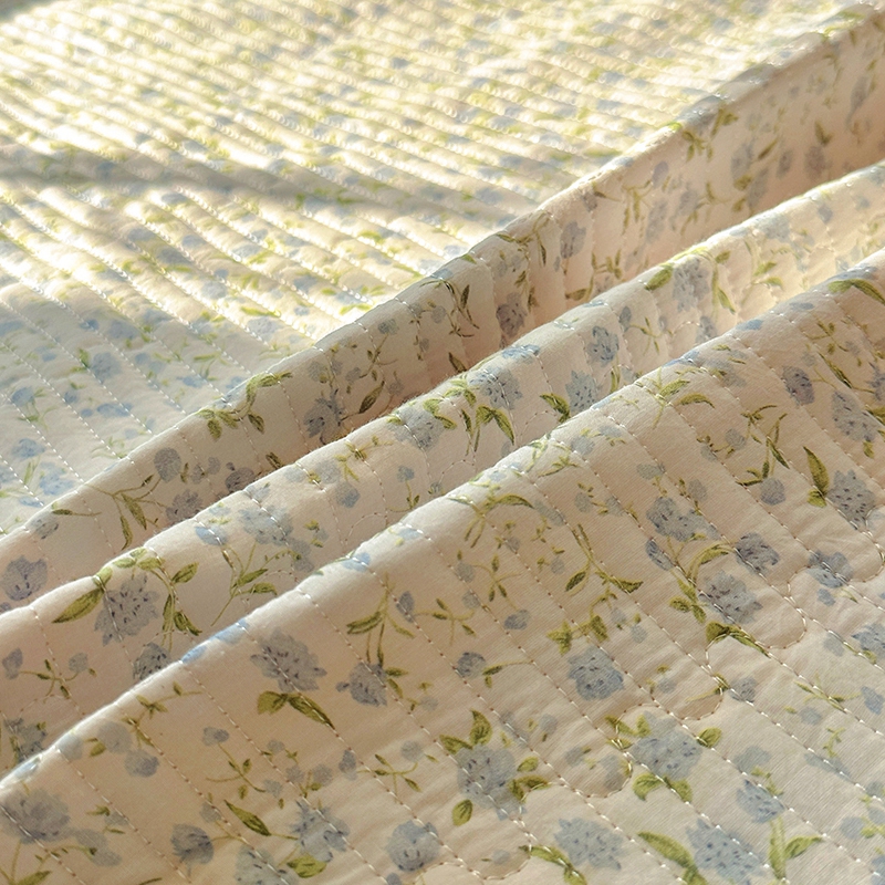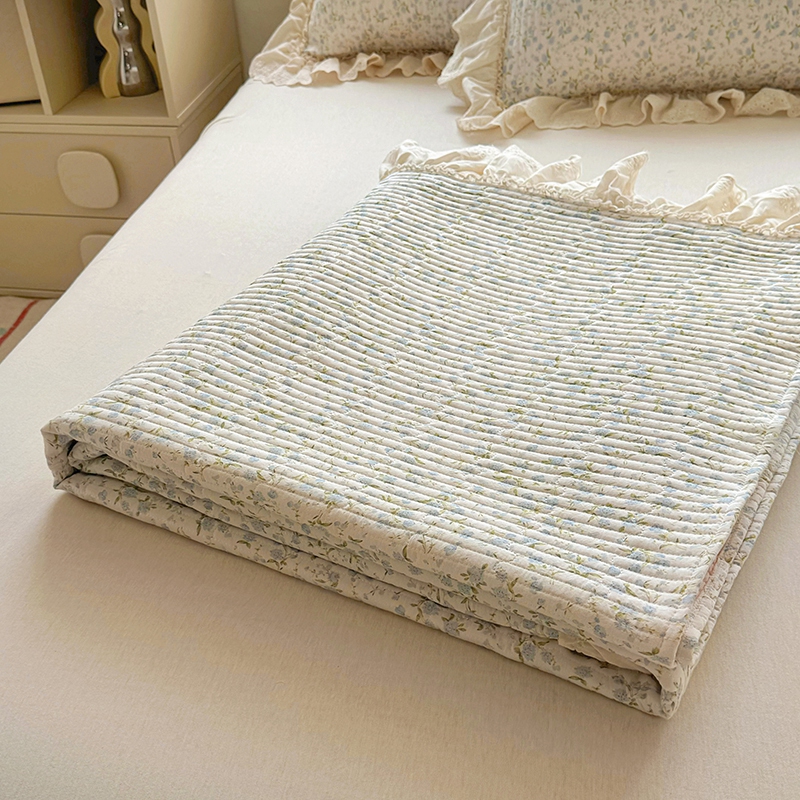 昊川 2025新款60支全棉双层纱酵素高温砂洗法式床盖 兰色小碎花