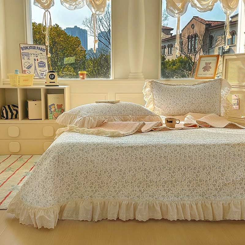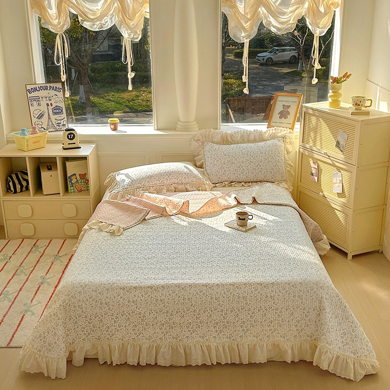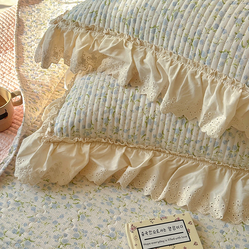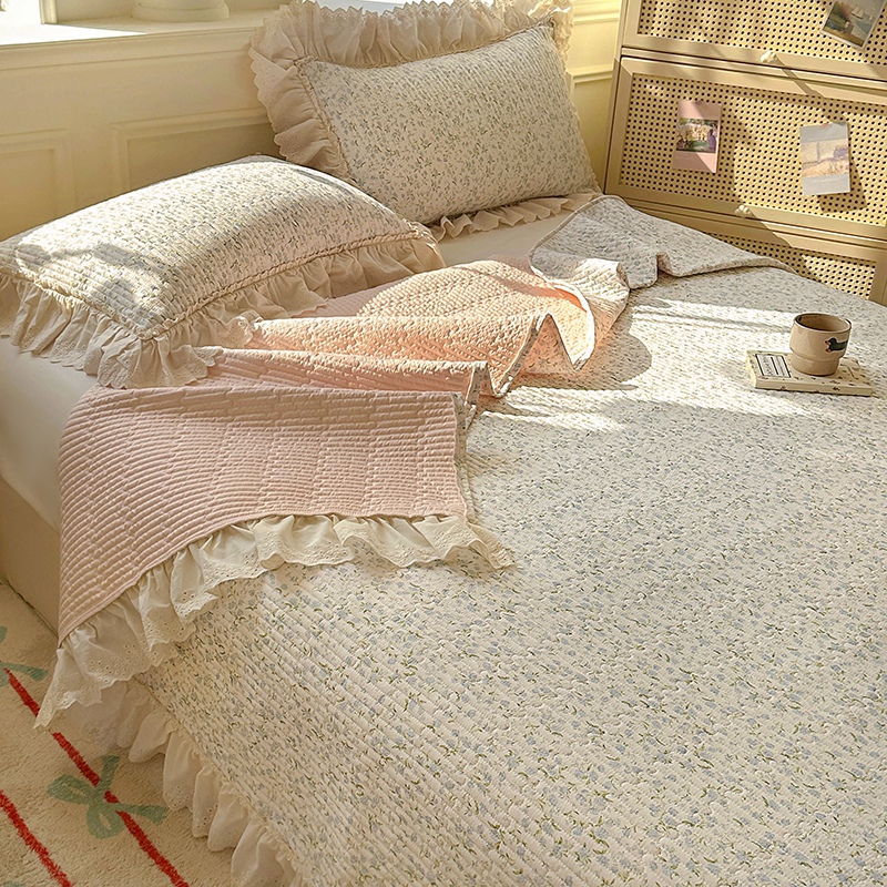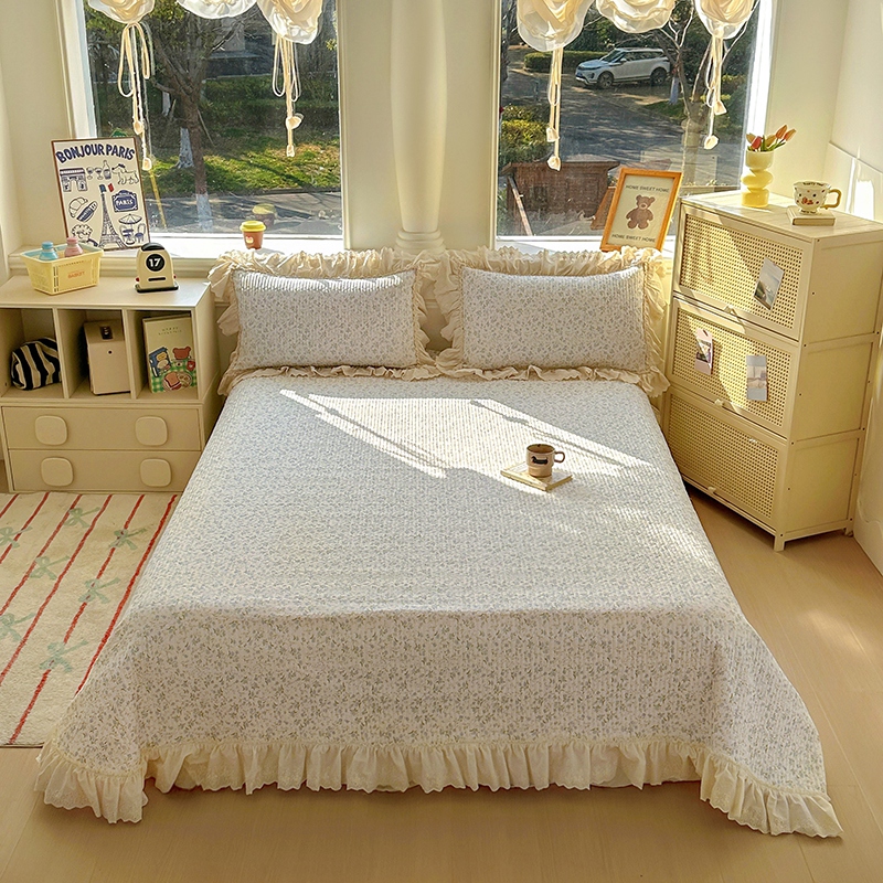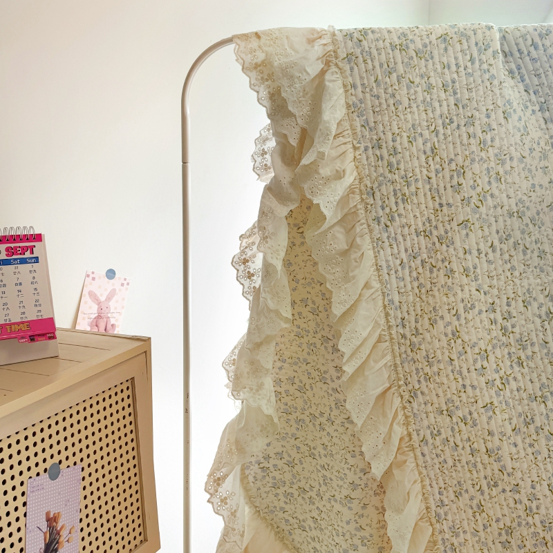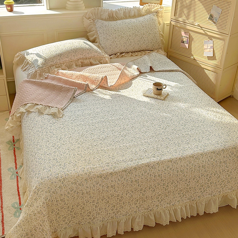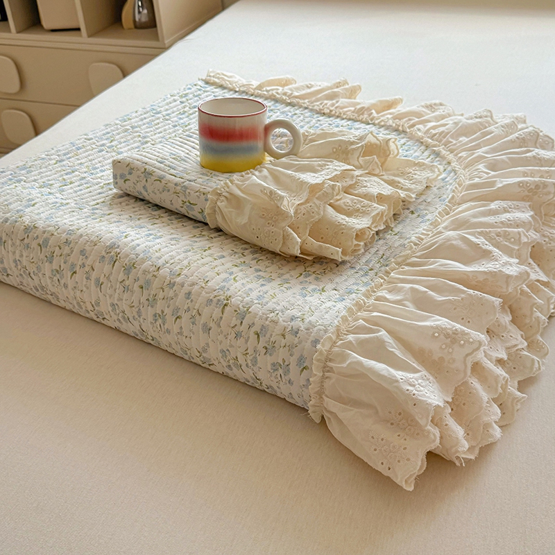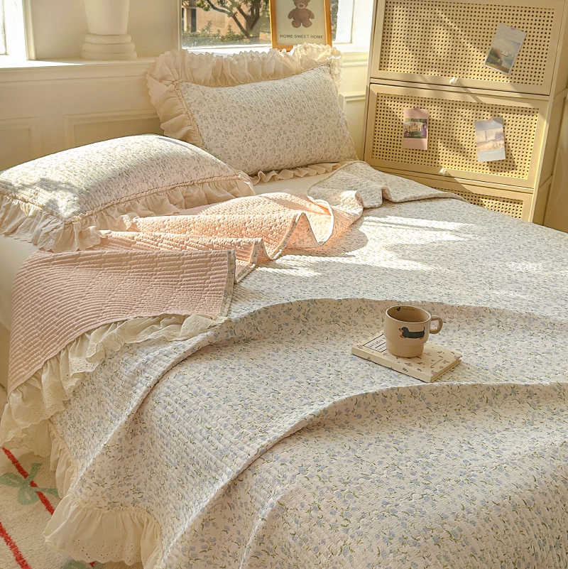 昊川 2025新款60支全棉双层纱酵素高温砂洗法式床盖 兰色小碎花