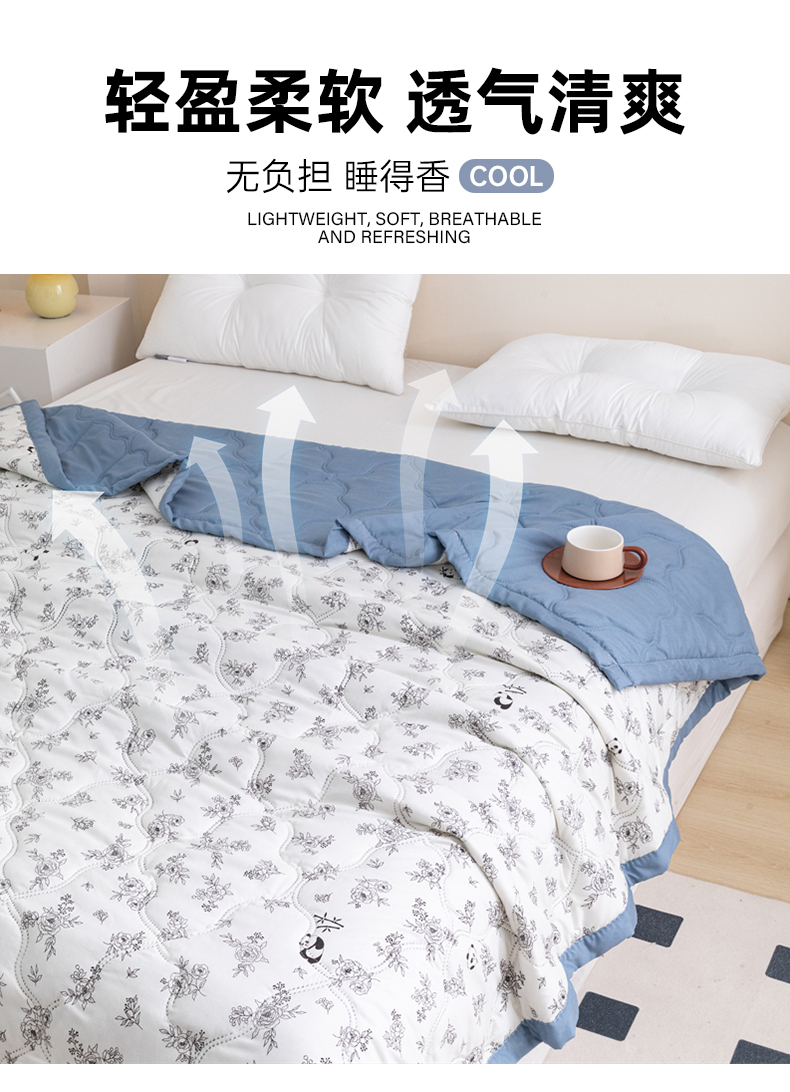 商品名称:梵心家纺 2025新款直播热款印花夏凉被空调被被子被芯水洗棉夏被 熊猫物语