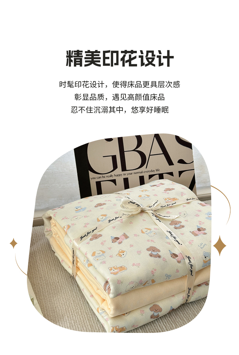 商品名称:曲之慕2025新款A类母婴级有氧全棉纯棉双层纱印花四件套 卡通乐园-米