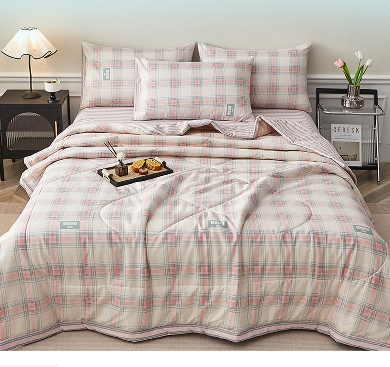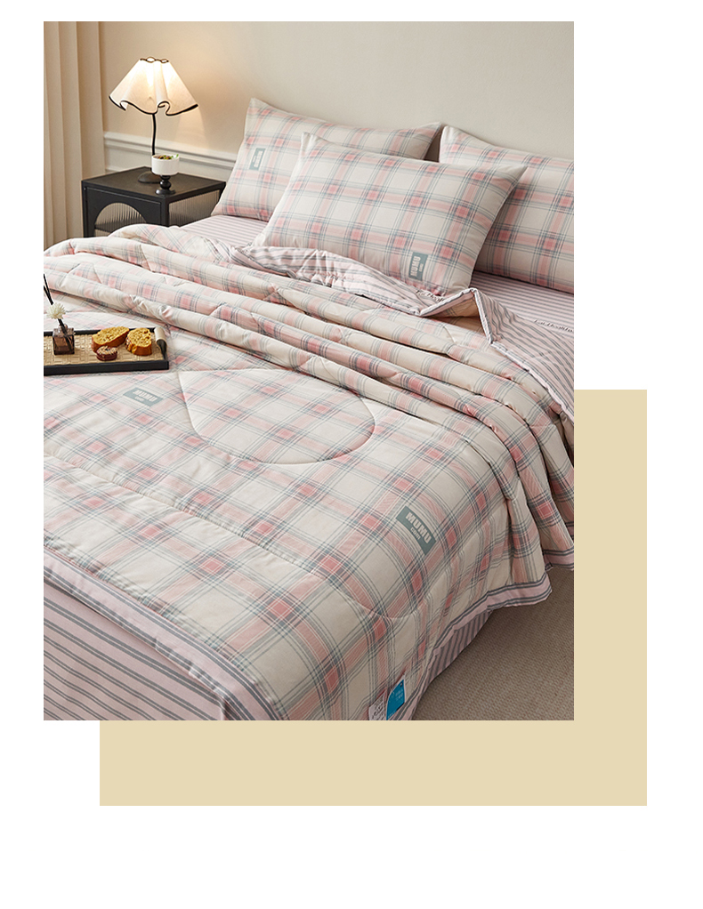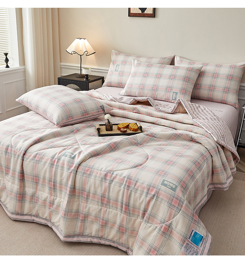 (总)海洋家纺 2025新款A类里外全棉棉花夏被四件套 格子系列,朗格 蓝,艾丽格 粉,布尔曼 咖,格兰特,可可里,罗马假日,莫兰迪,维也纳 绿,新印象,雅格 灰,英伦风范