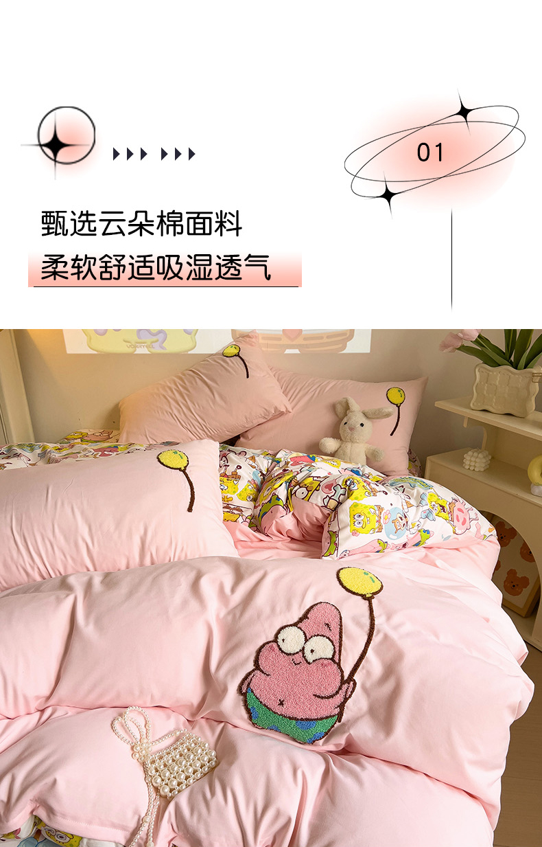 商品名称:苏拉家居 2025新款A类水洗云朵棉毛巾绣+印花系列四件套 海绵贝贝