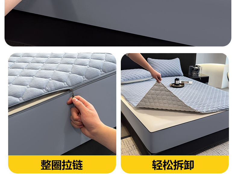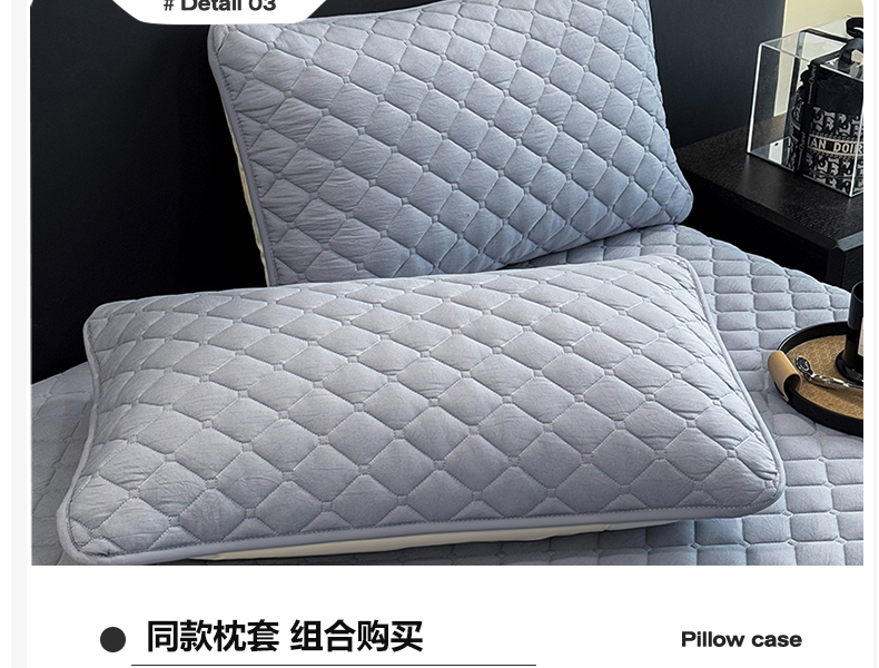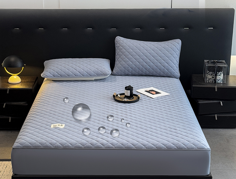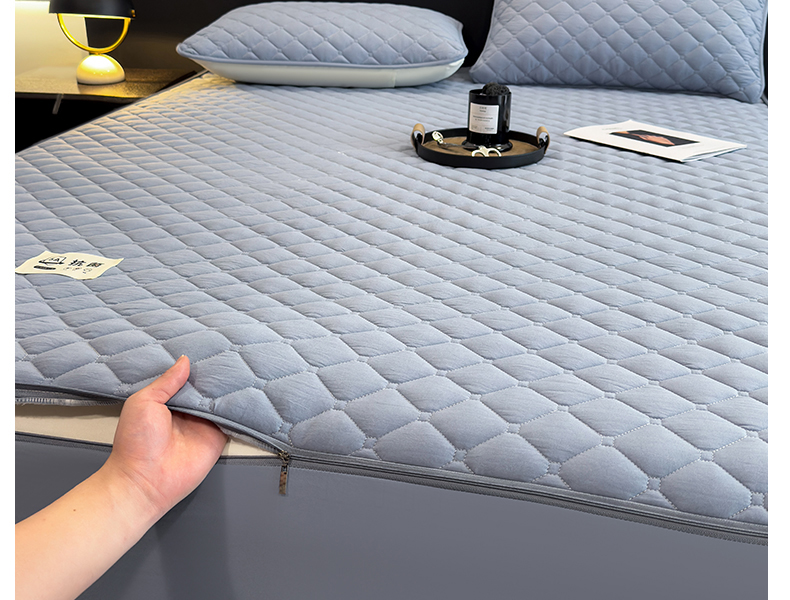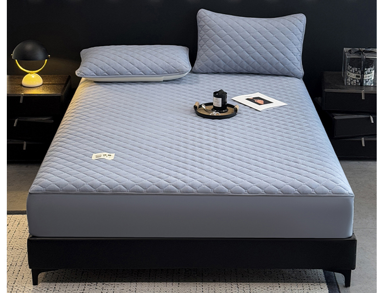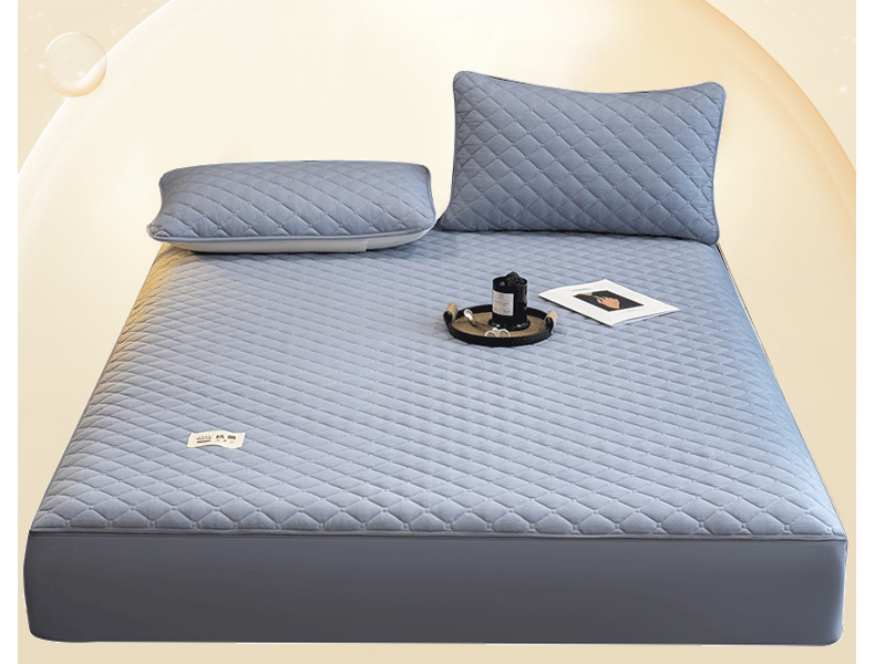 • 91家纺网 家纺一手货源 找家纺 叠派家纺 2025新款5A抗菌A类夹棉床笠经典款防水款系列 月光灰-小格子防水款