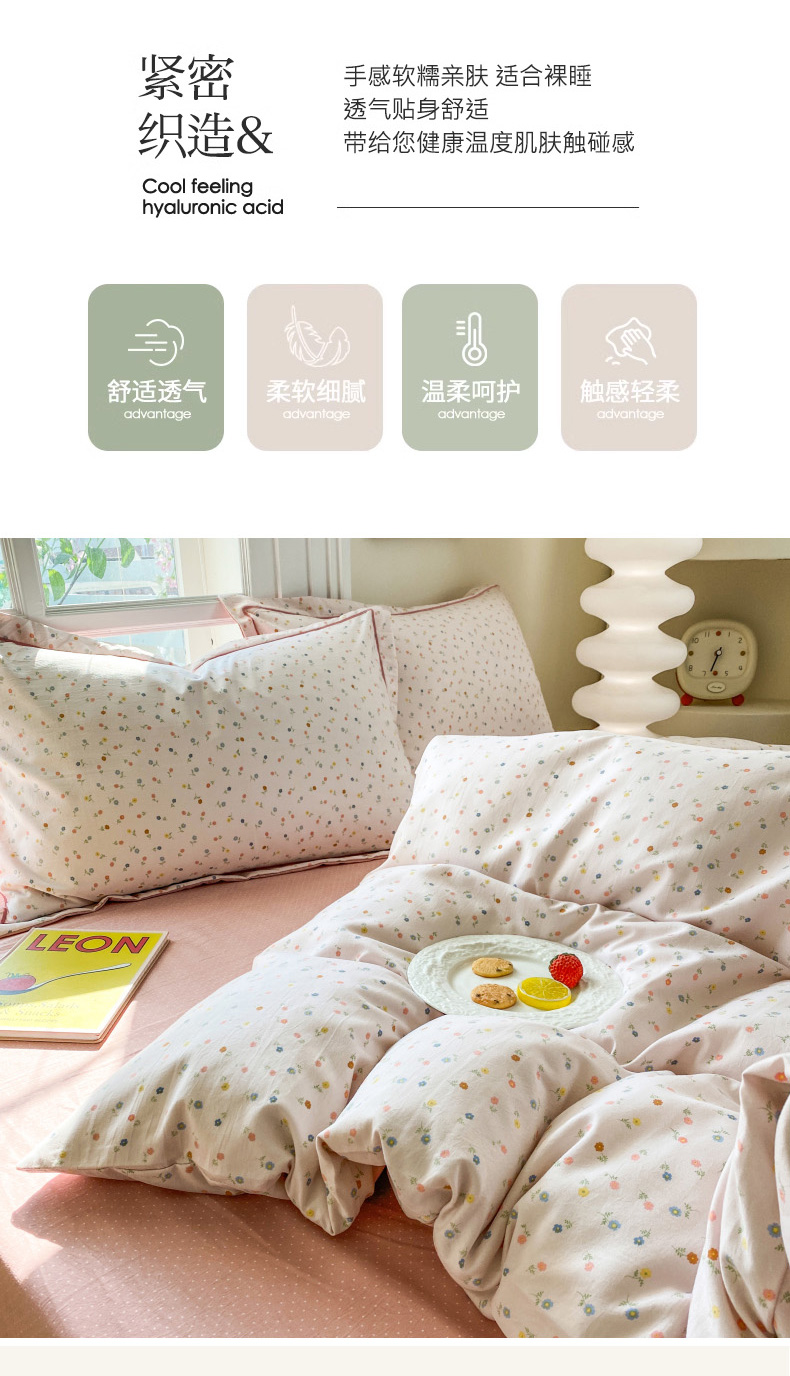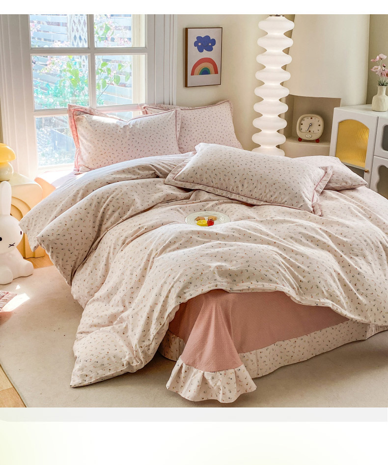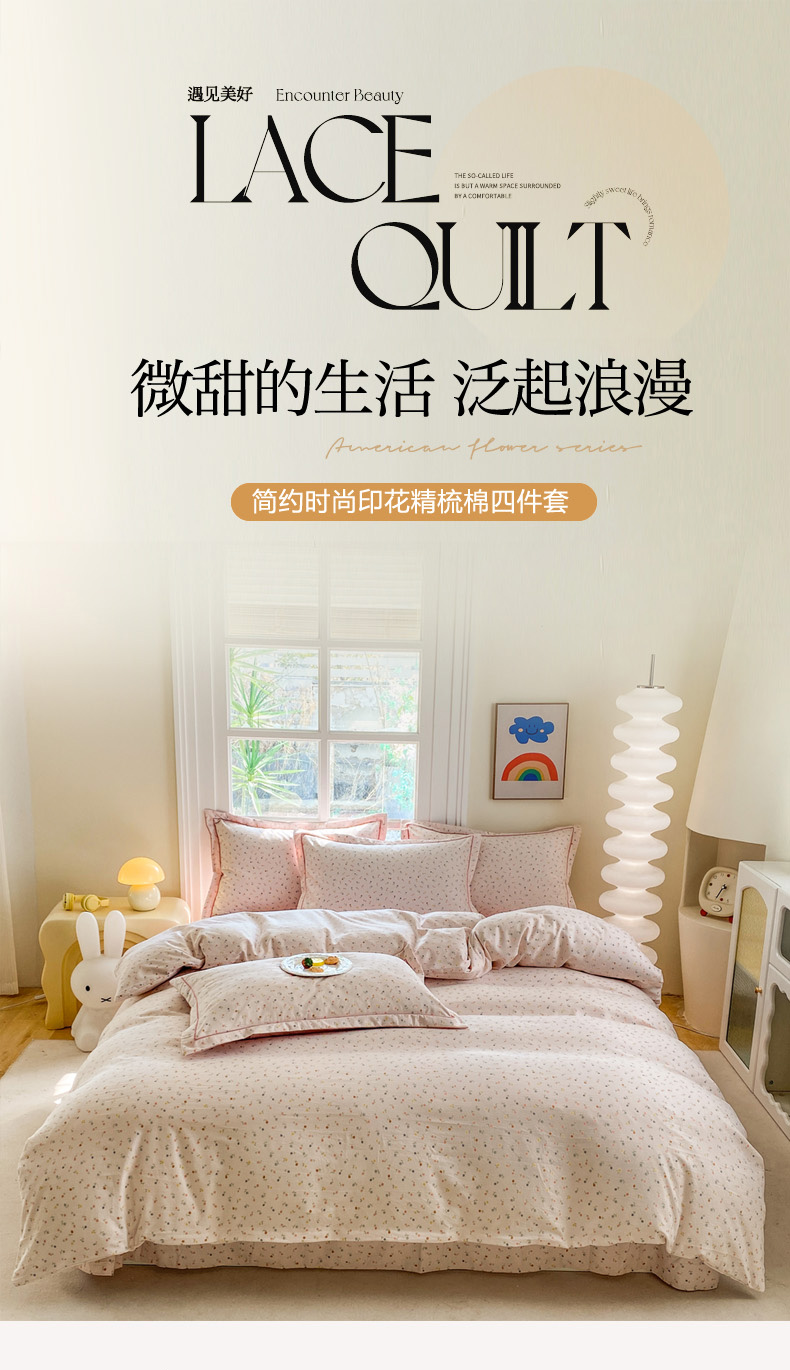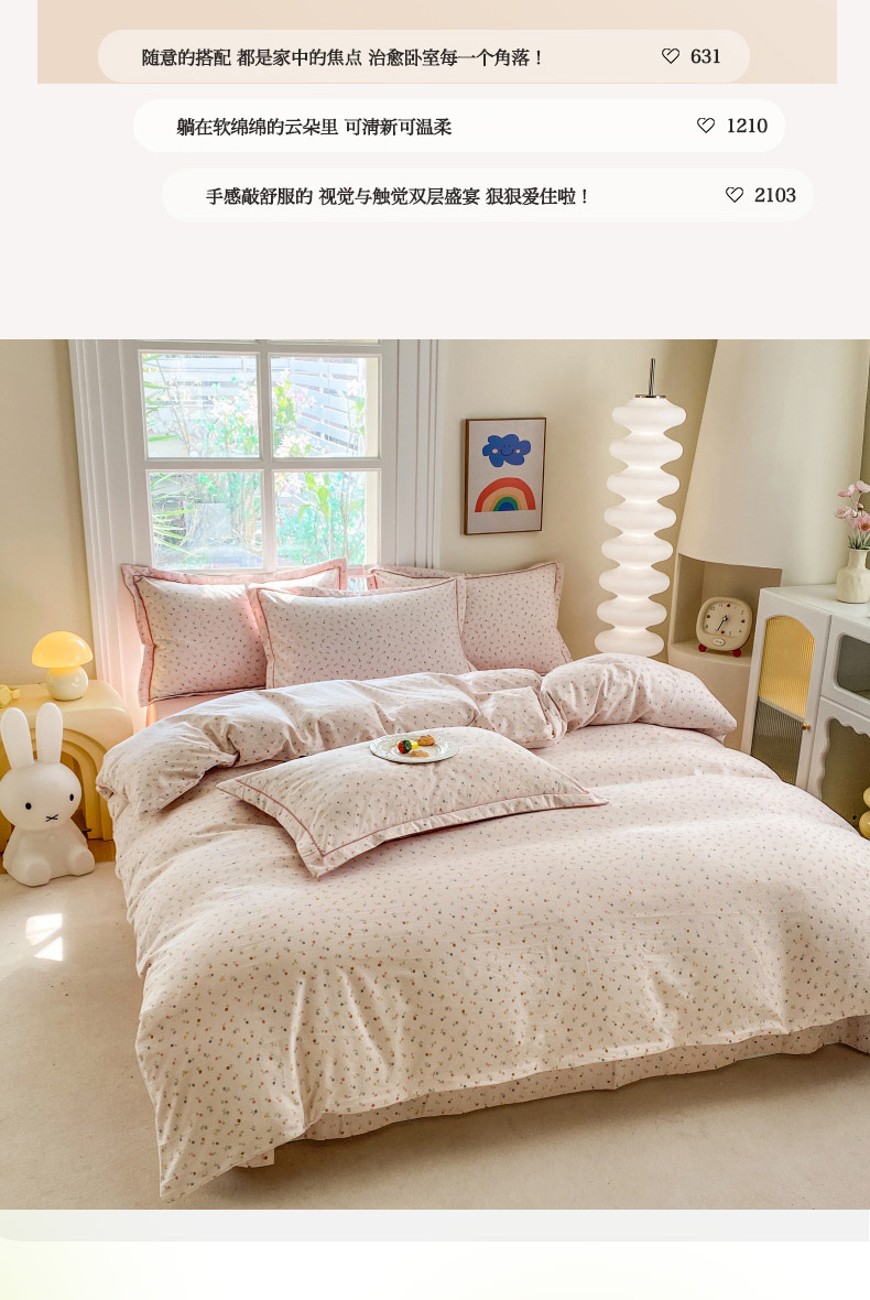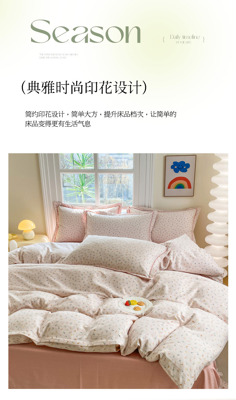当前位置: 91家纺网 > 商品网购 > 床品套件 > 四件套 > 其它四件套 > 包小包 2025新款简约时尚印花精梳棉小奶棉清新四件套 随想(粉)