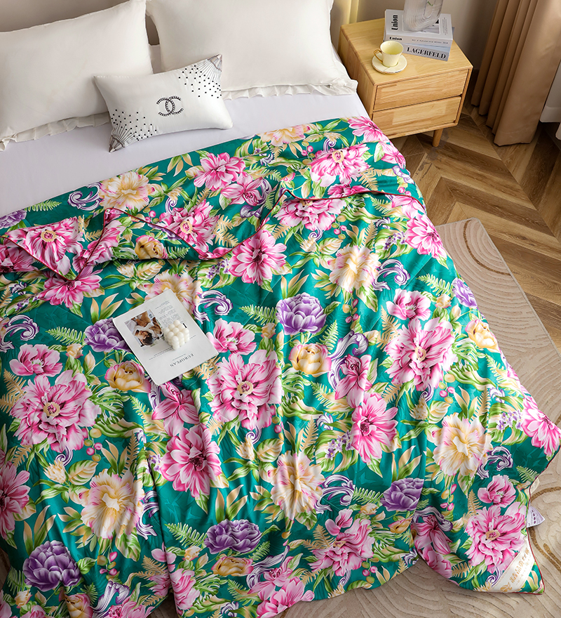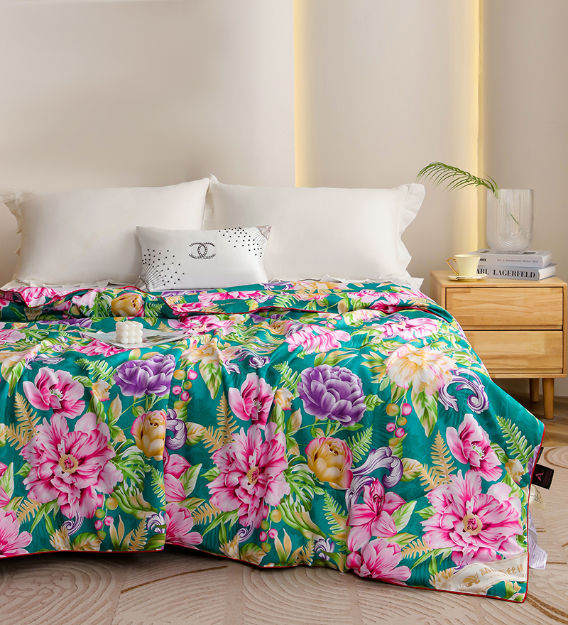 (总)莉雅居 2025新款直播爆款天丝绸印花子被芯春秋冬被 花田喜事