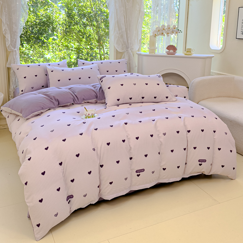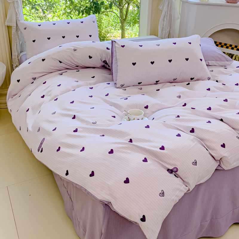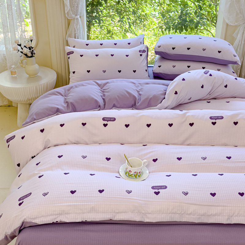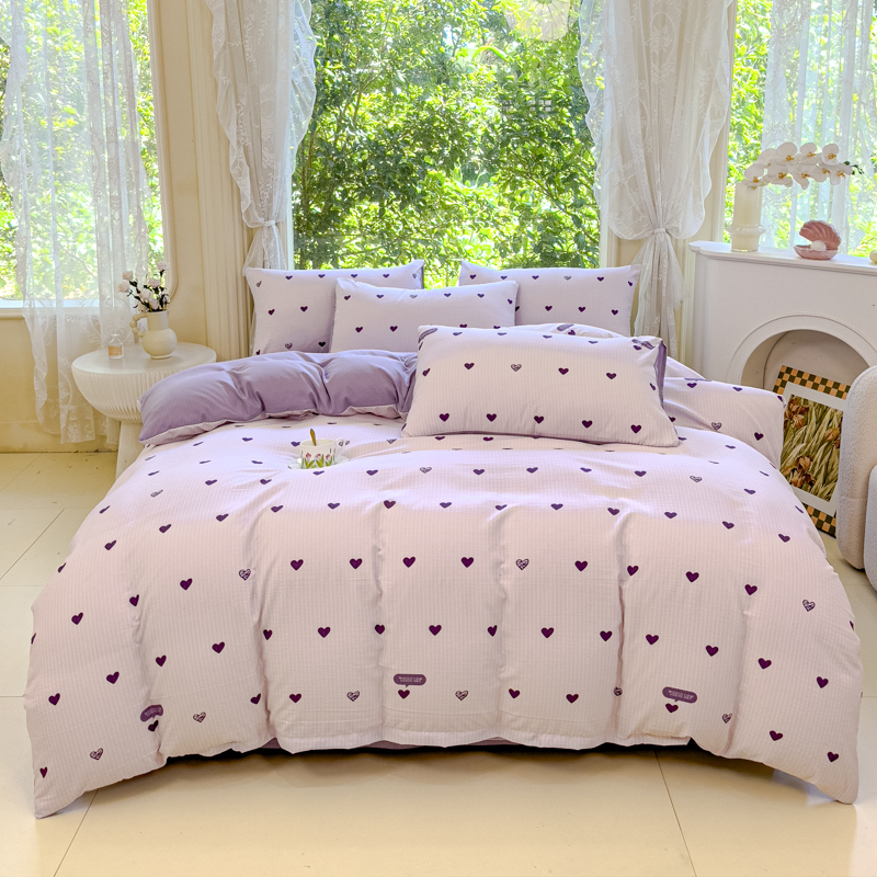 商品名称:仟网汇 2025新款亲肤舒适提花小竺棉彩竹棉彩竺棉系列四件套 彩竺棉-紫爱心
