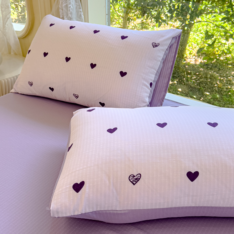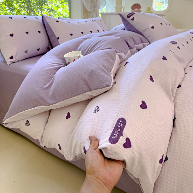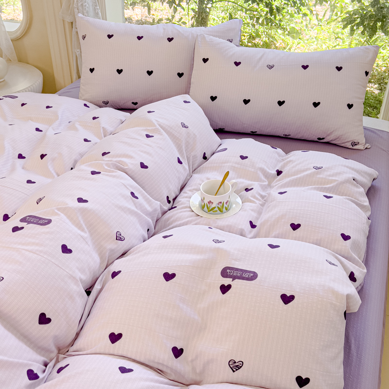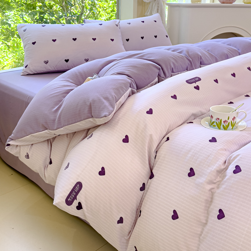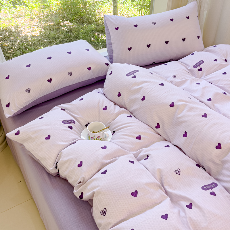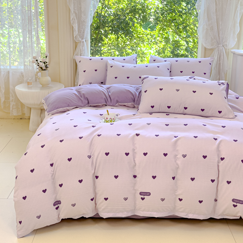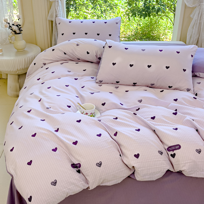 仟网汇 2025新款亲肤舒适提花小竺棉彩竹棉彩竺棉系列四件套 彩竺棉-紫爱心