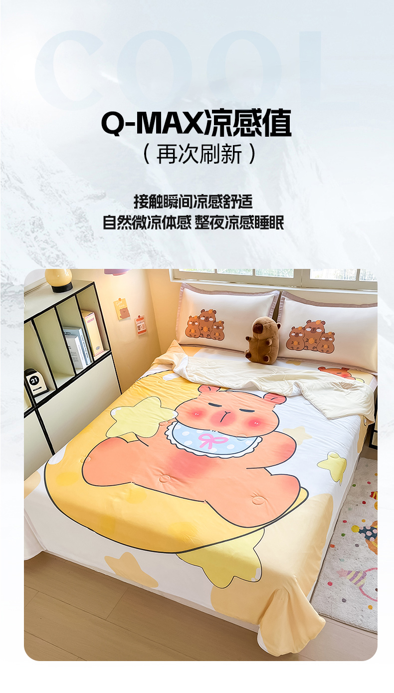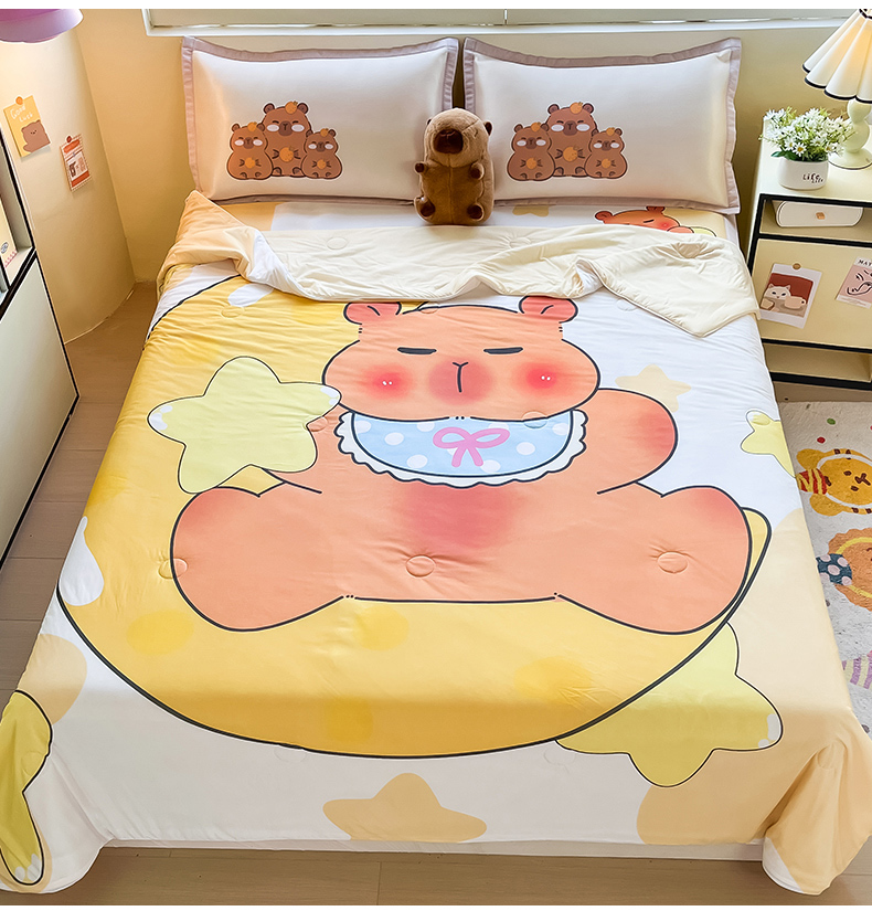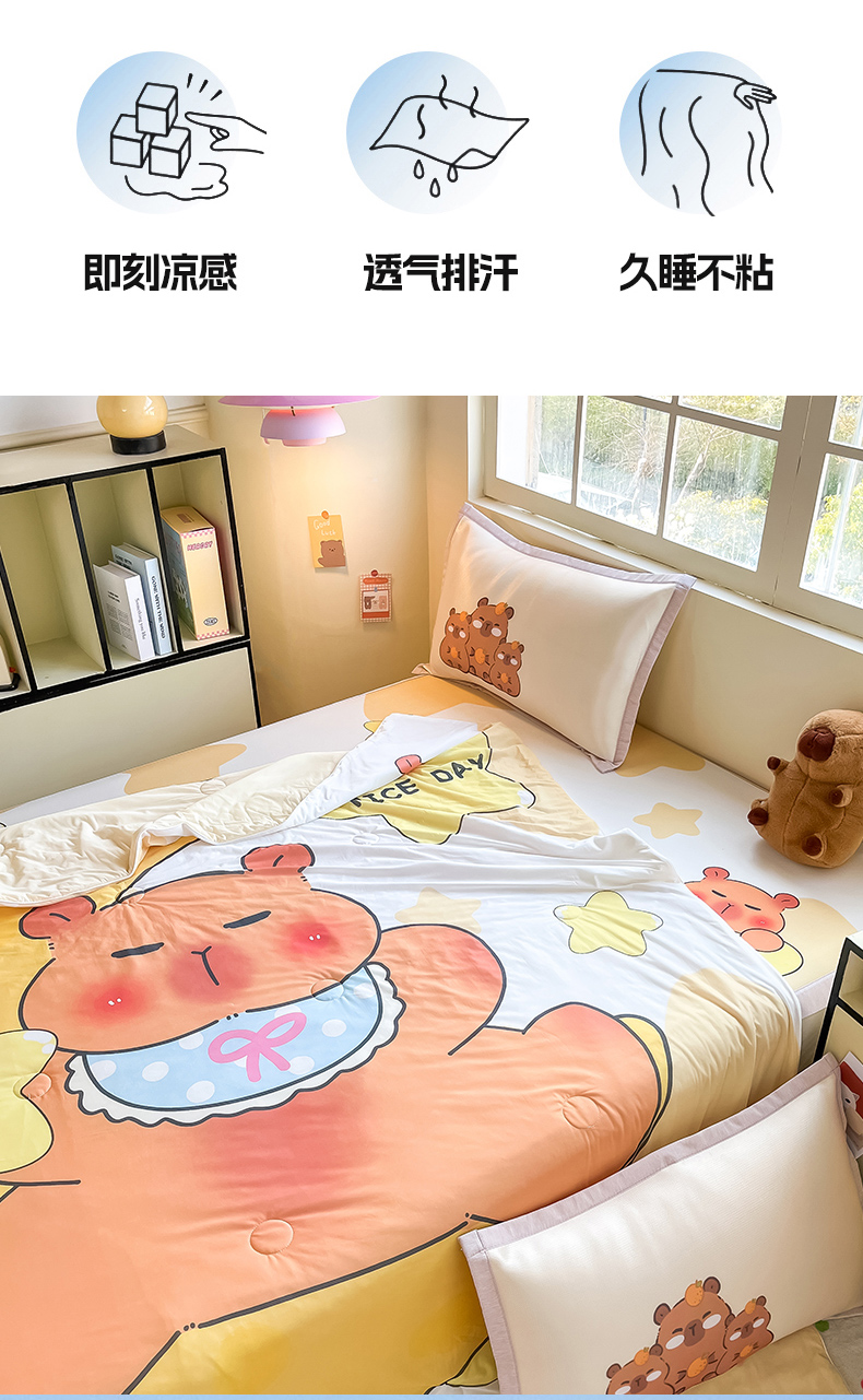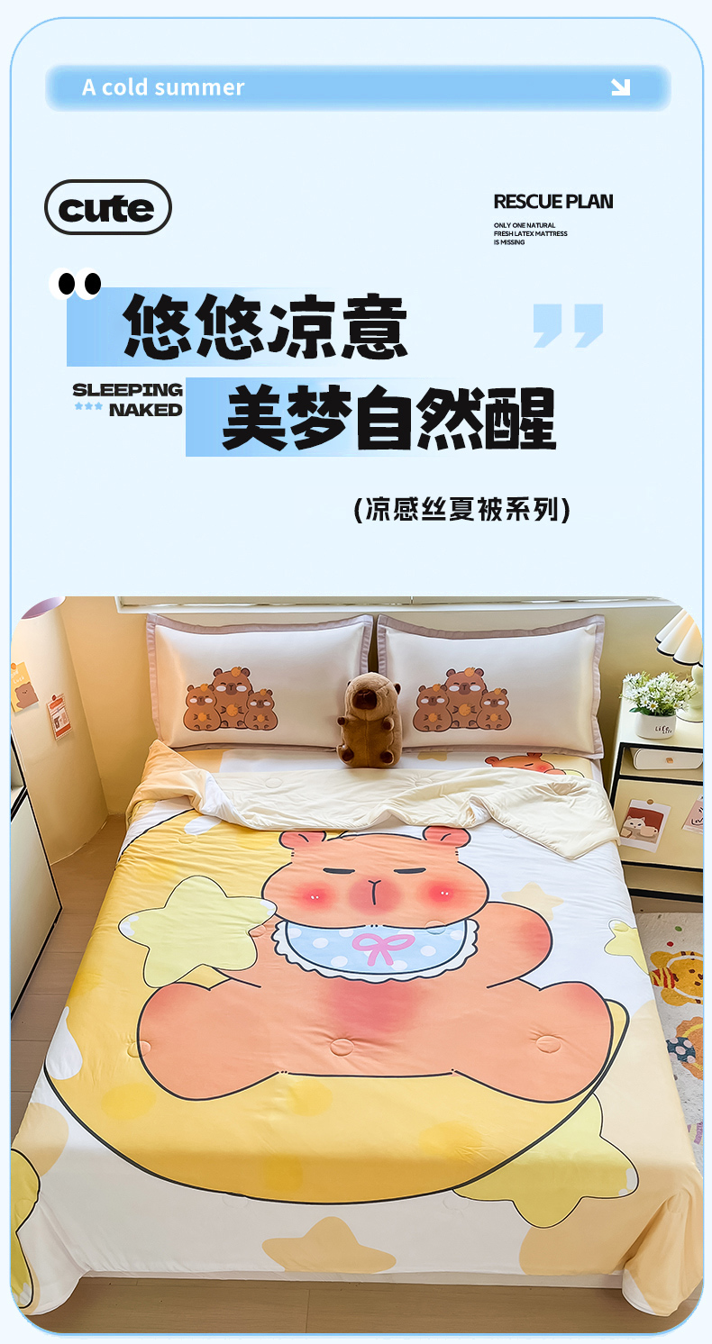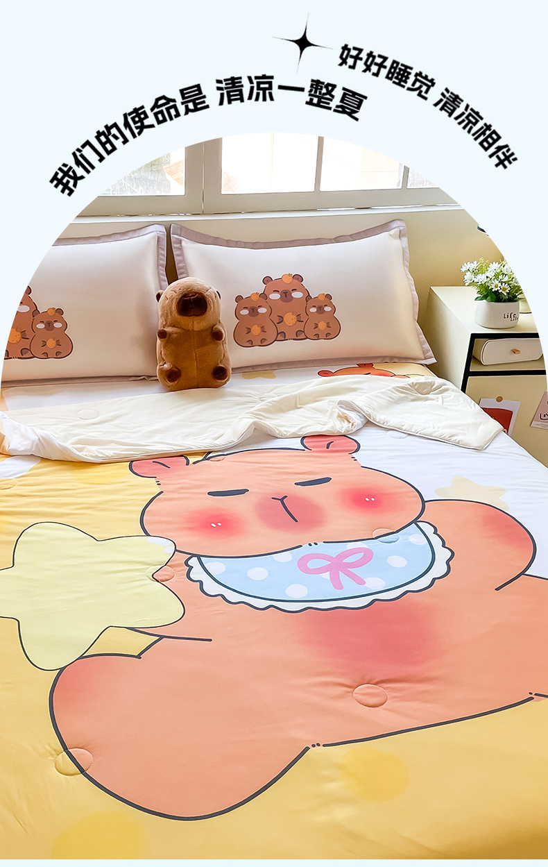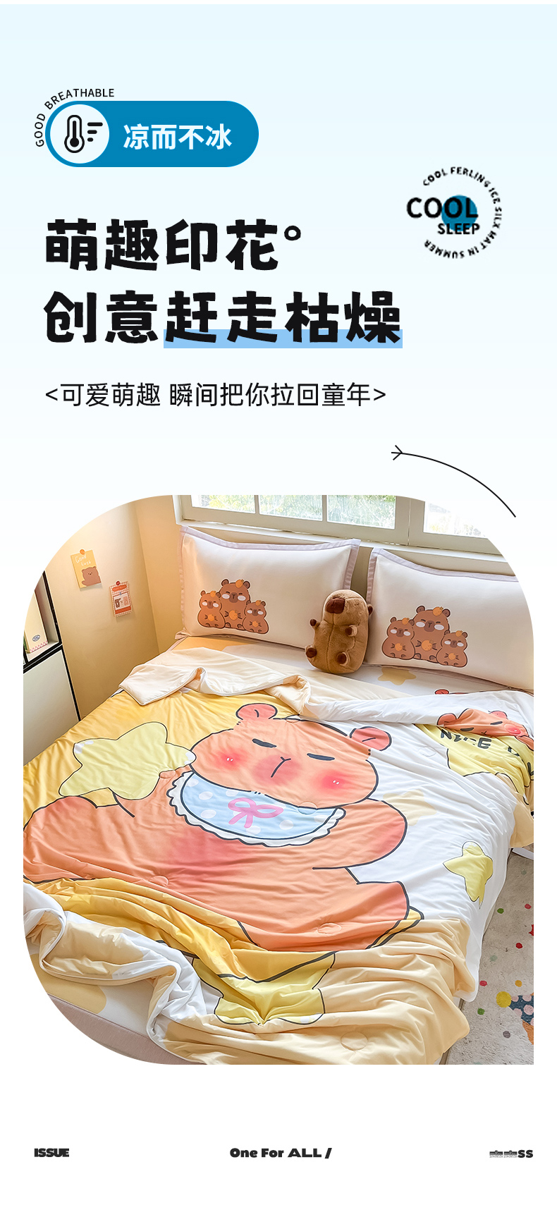 • 91家纺网 家纺一手货源 找家纺 博雅 2025新款A类大版数码印花冰丝凉席可组合凉感丝夏被-卡皮巴拉 月亮卡皮巴拉