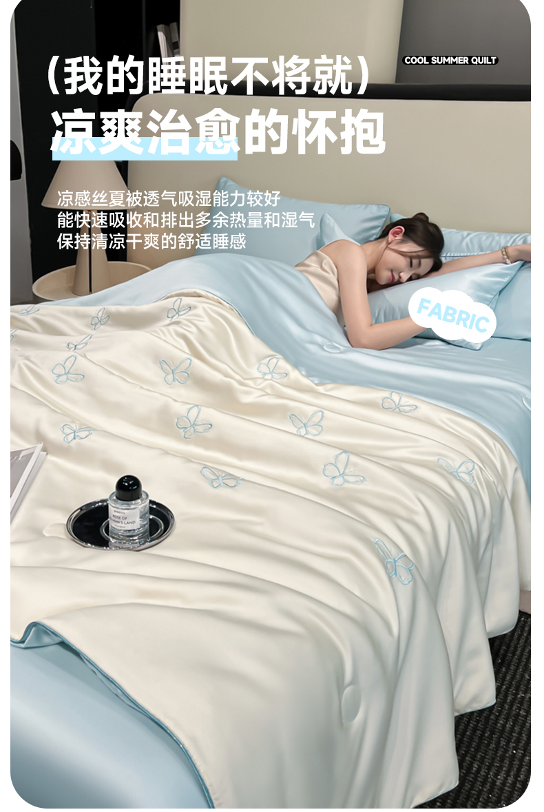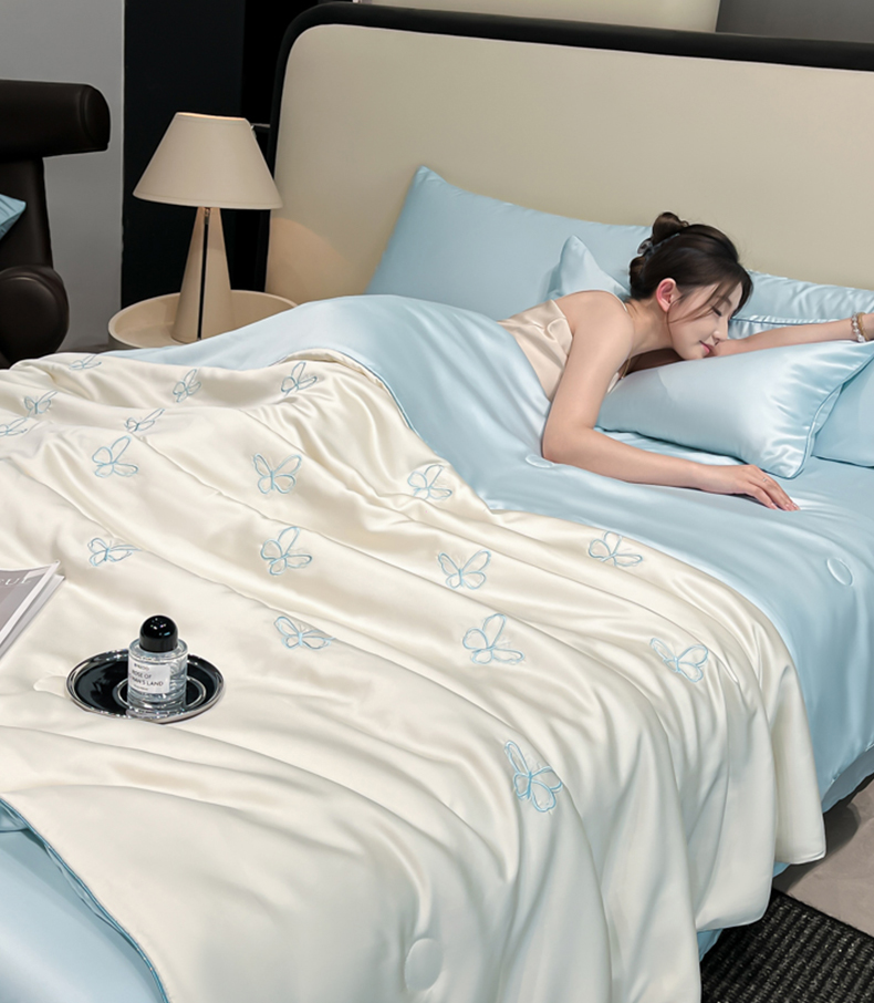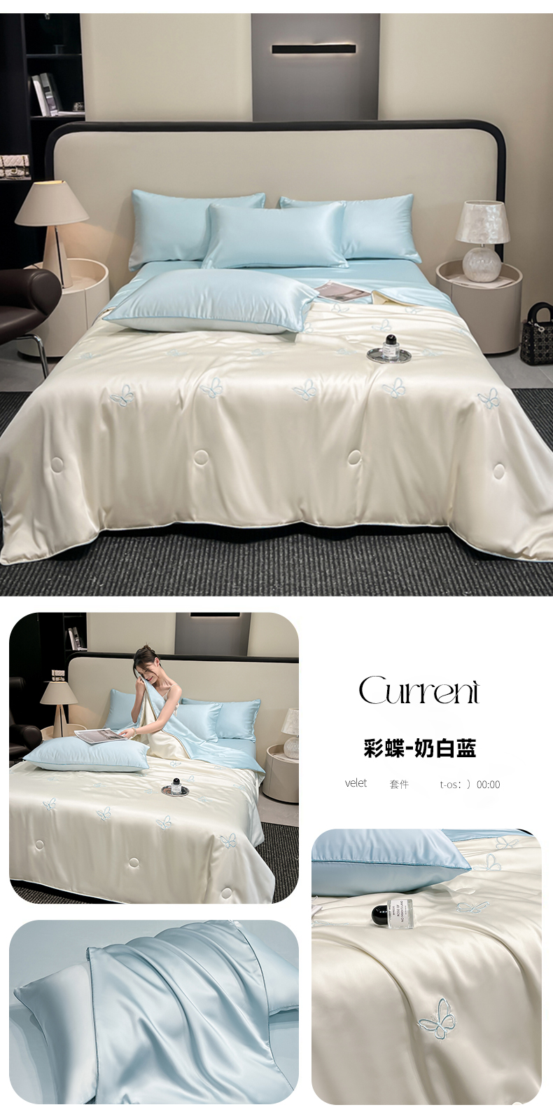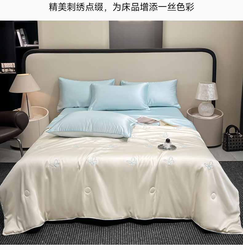 当前位置: 91家纺网 > 商品网购 > 床品套件 > 四件套 > 夏被四件套 > 鑫顺欣 2025新款水洗冰丝刺绣麻绳系列凉感夏被四件套夏凉被 彩蝶-奶白蓝