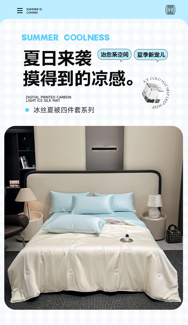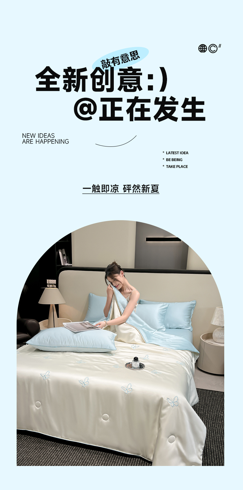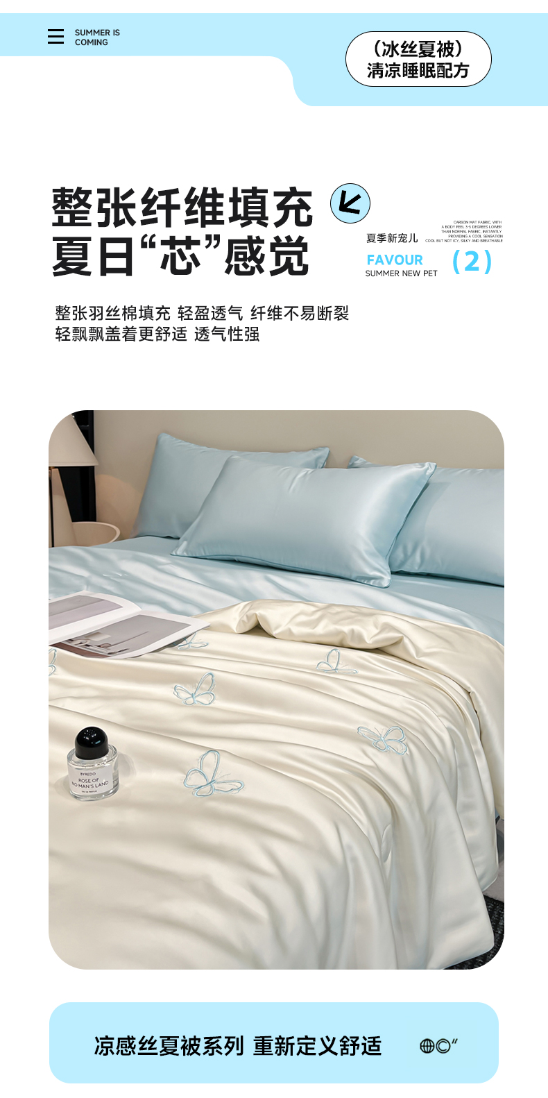 当前位置: 91家纺网 > 商品网购 > 床品套件 > 四件套 > 夏被四件套 > 鑫顺欣 2025新款水洗冰丝刺绣麻绳系列凉感夏被四件套夏凉被 彩蝶-奶白蓝