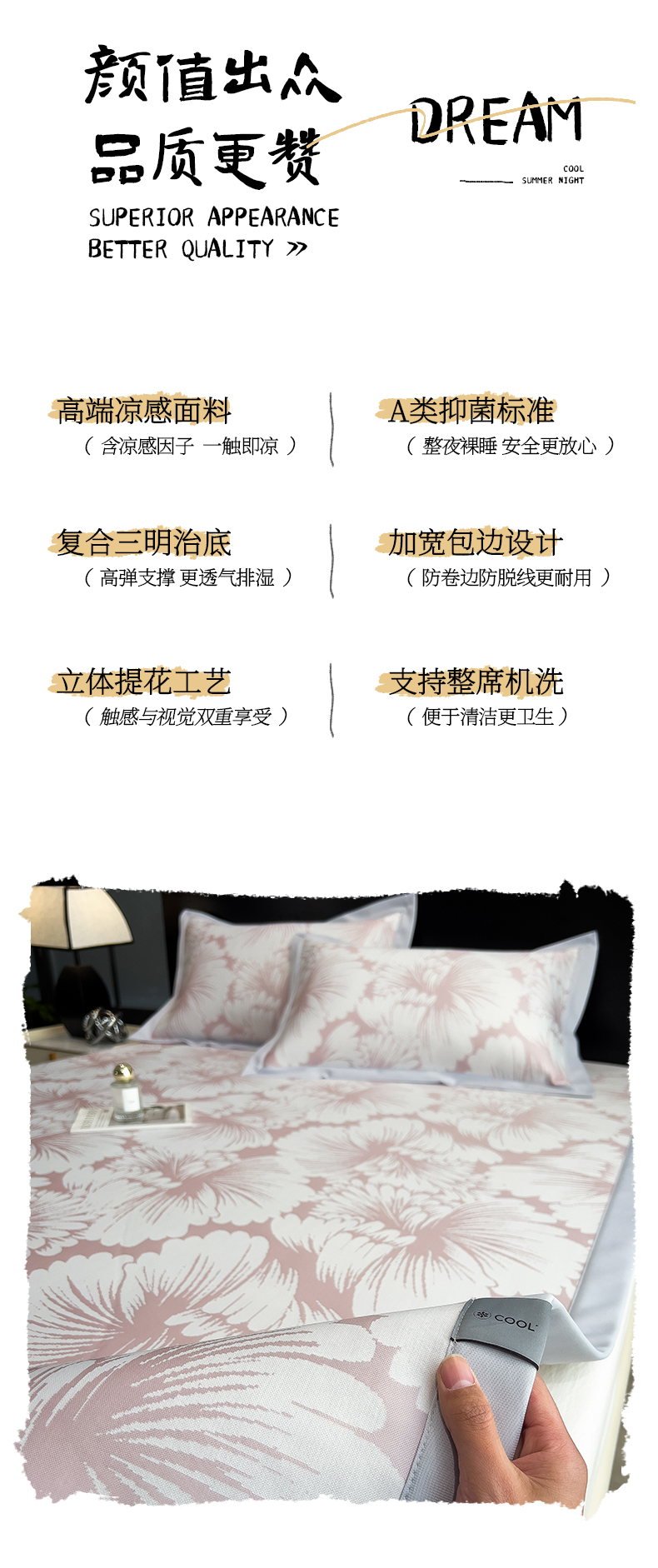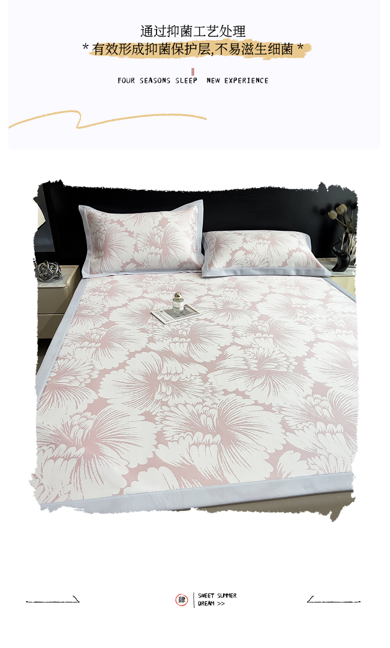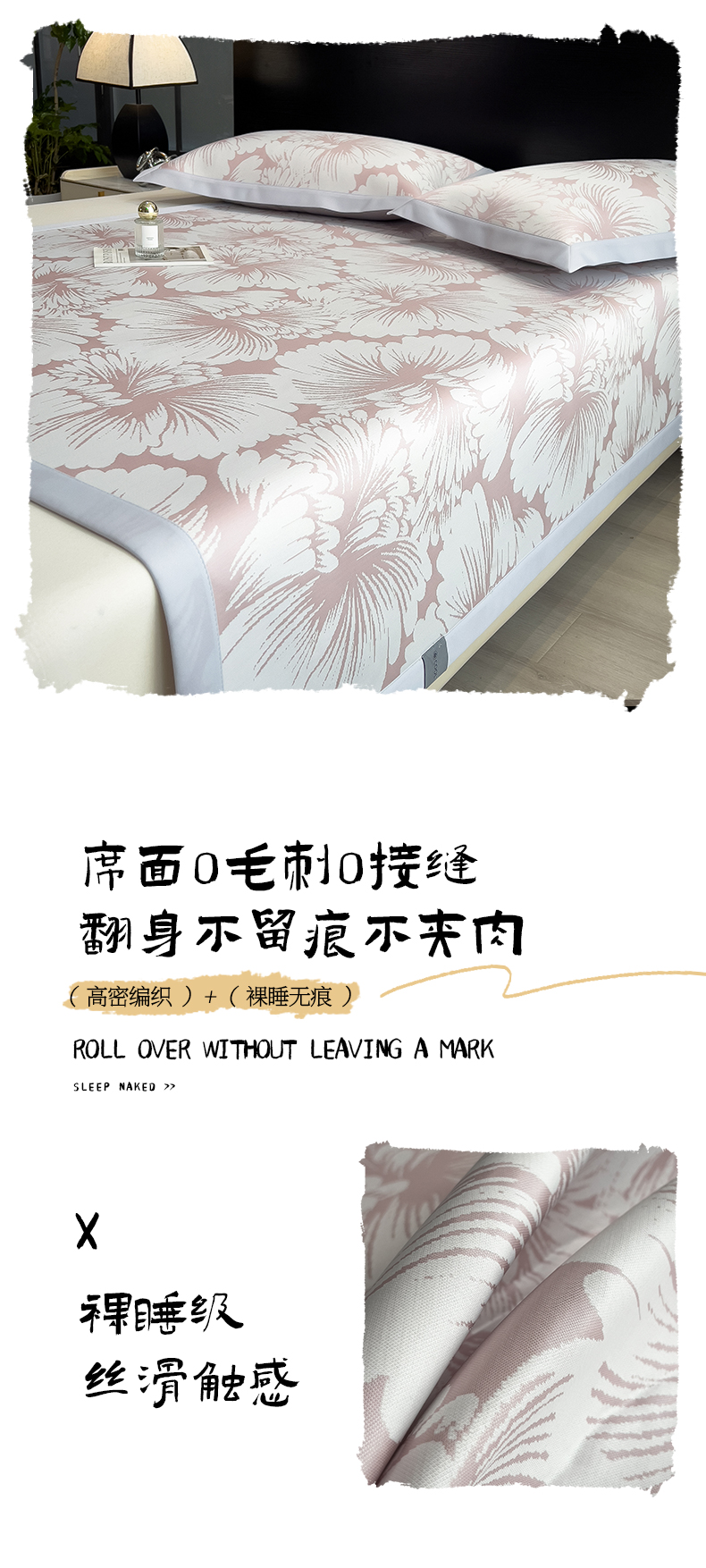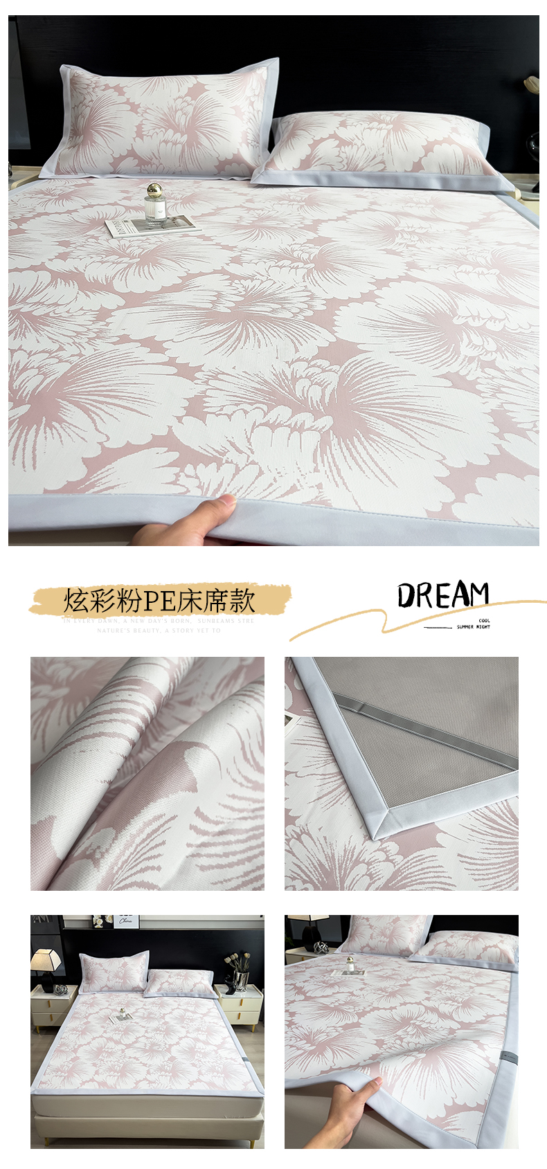 商品名称:倾慕家纺 2025新款简约PE50提花凉感席席子凉席-床席款 炫彩粉PE床席款