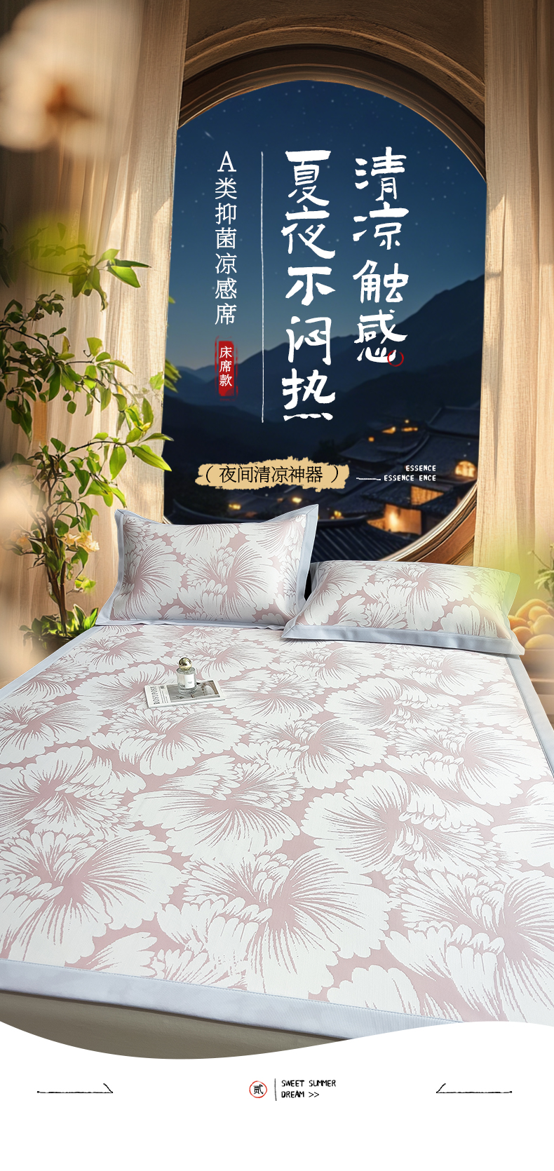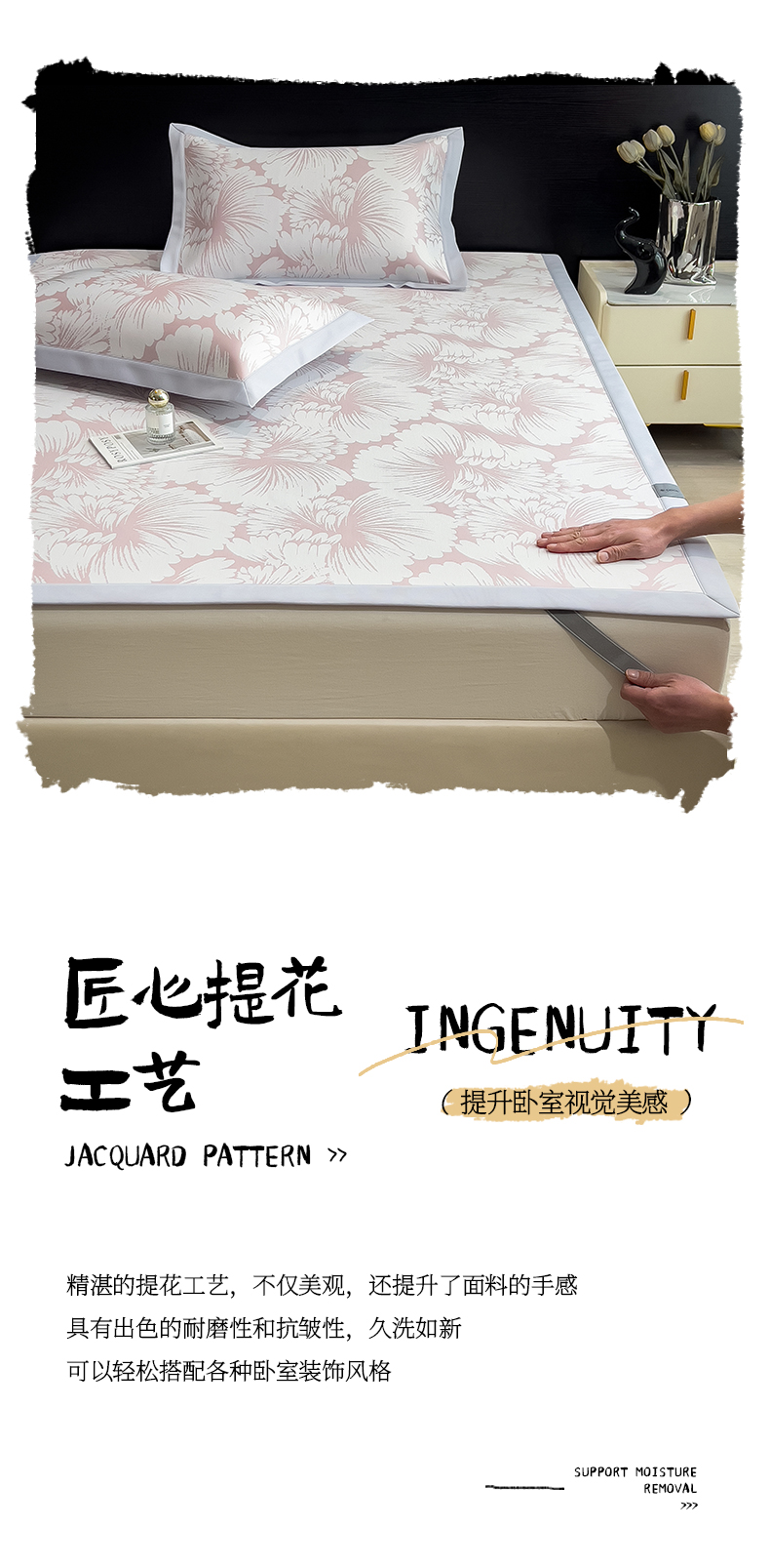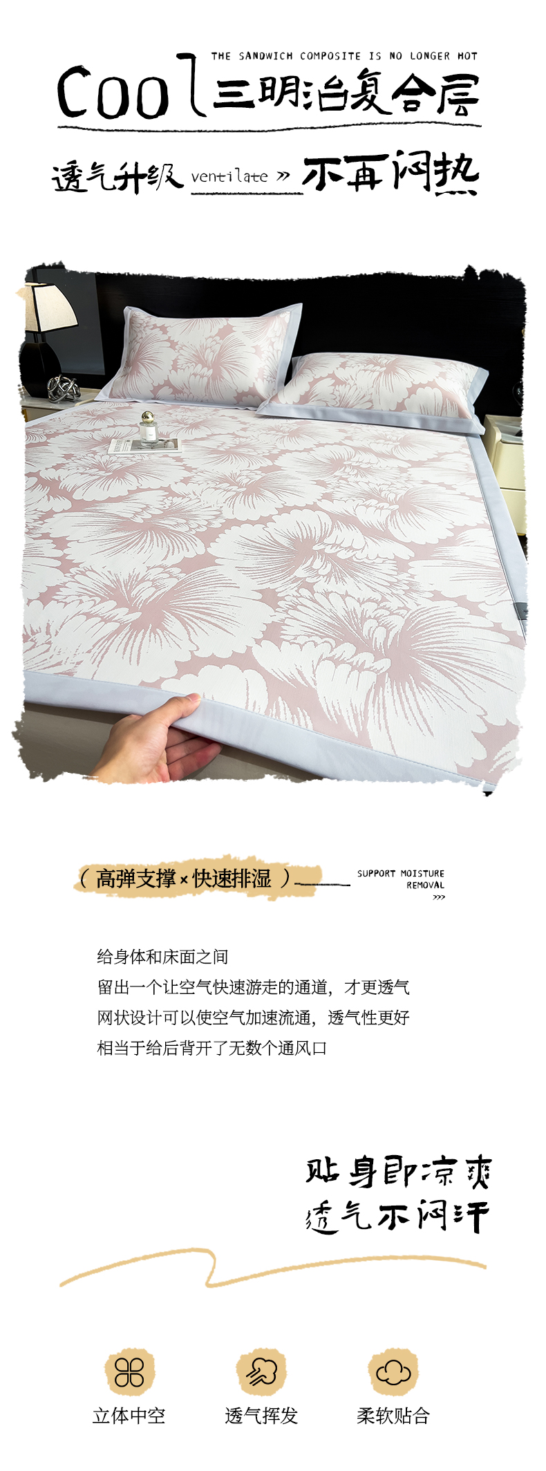 商品名称:倾慕家纺 2025新款简约PE50提花凉感席席子凉席-床席款 炫彩粉PE床席款