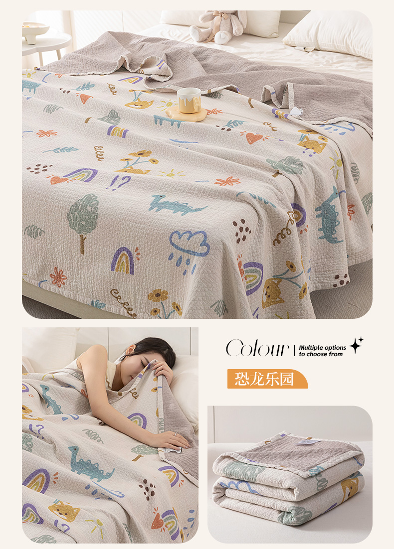 商品名称:乐家毛巾被(工厂自产自销) 2025春夏新款三层全棉纯棉印花毛巾被 恐龙乐园