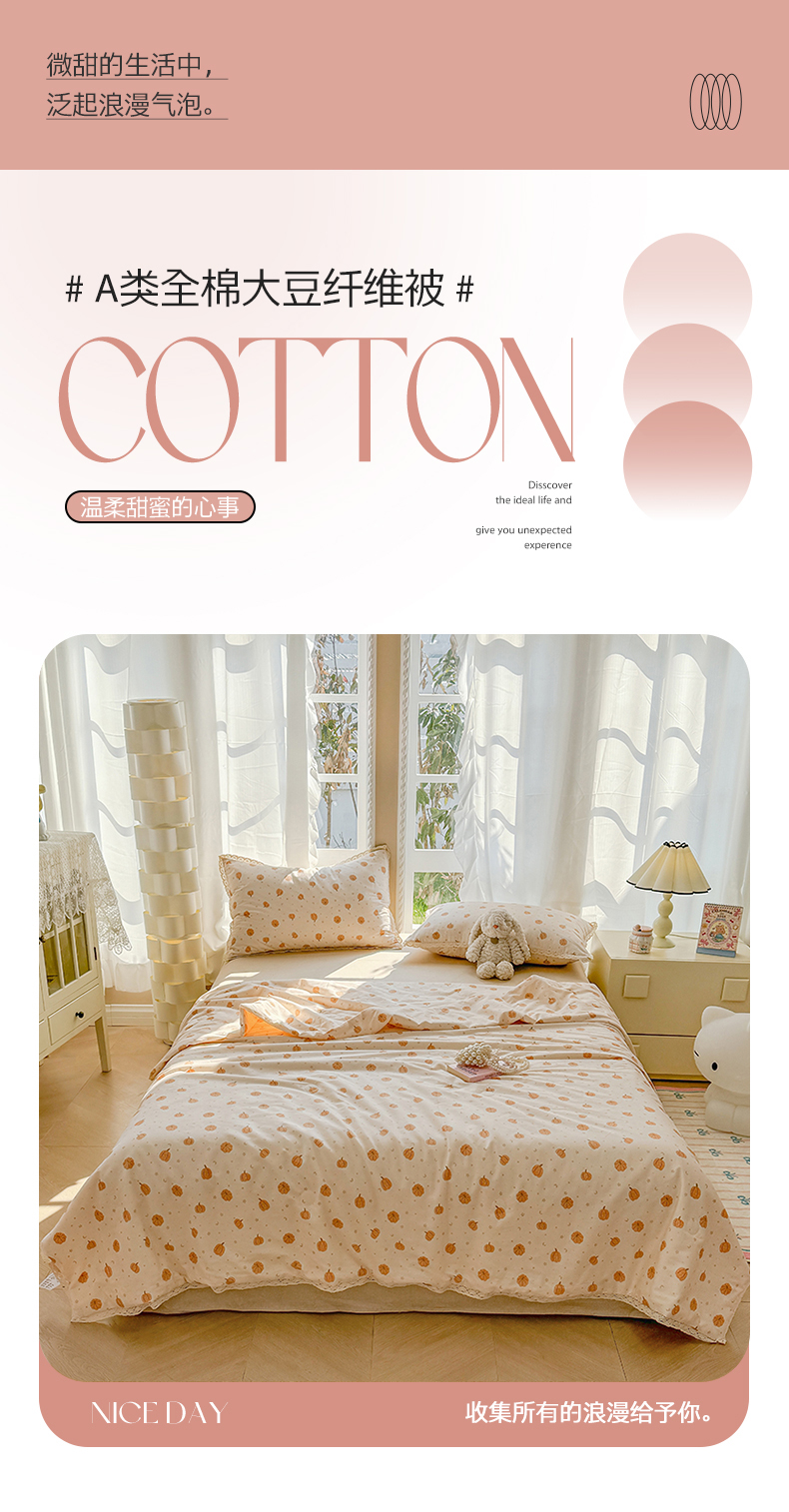 • 91家纺网 家纺一手货源 找家纺 梦依依 2025新款小清新印花系列全棉夏被大豆夏被