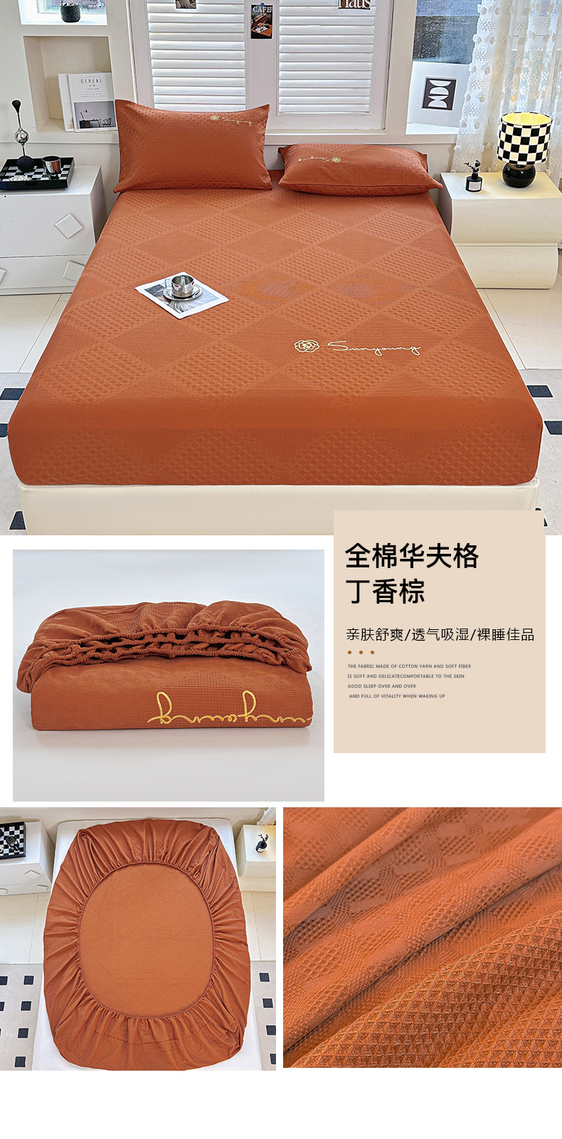 曼町家居 2025新款全棉华夫格床笠 丁香棕