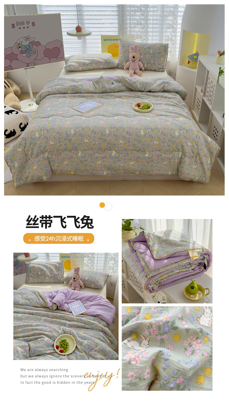 商品名称:美派工厂店2025新款水洗邹邹纱夏被 丝带飞飞兔