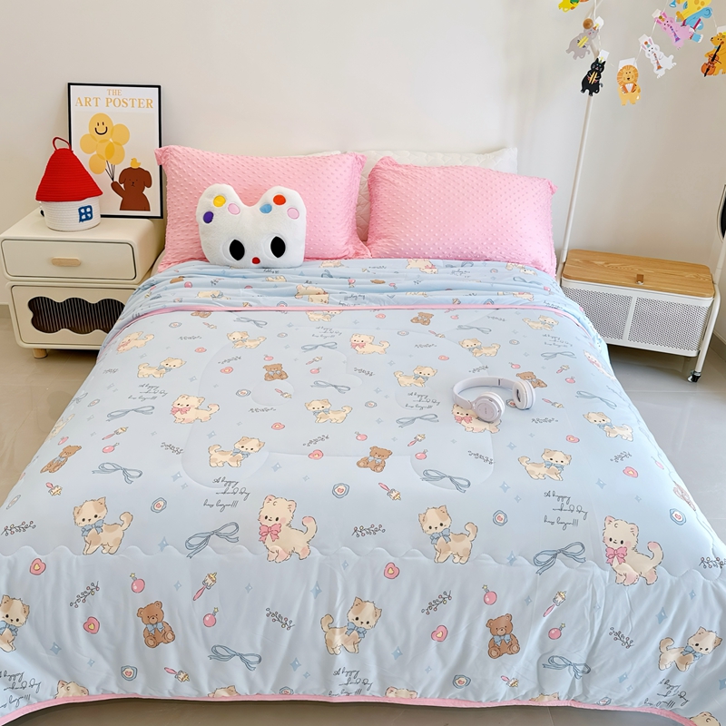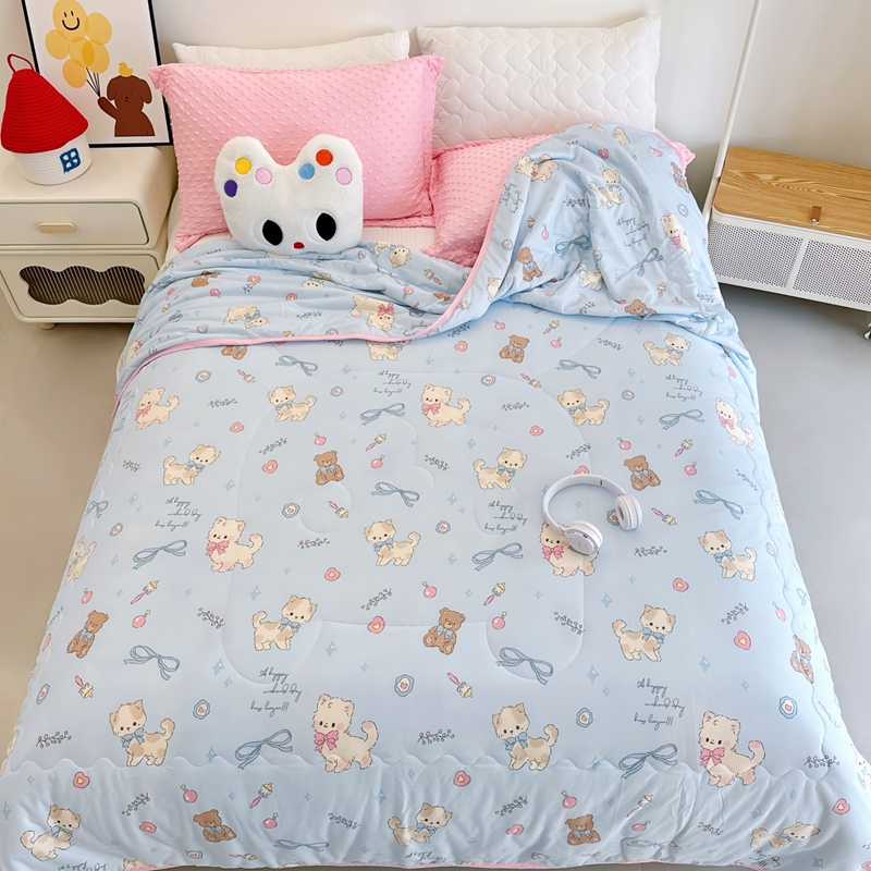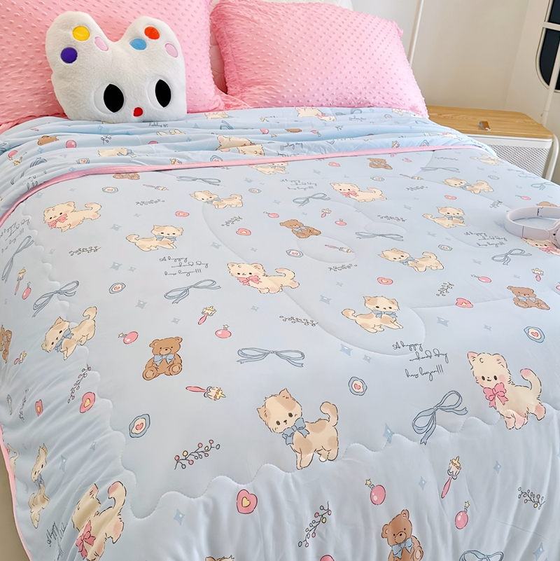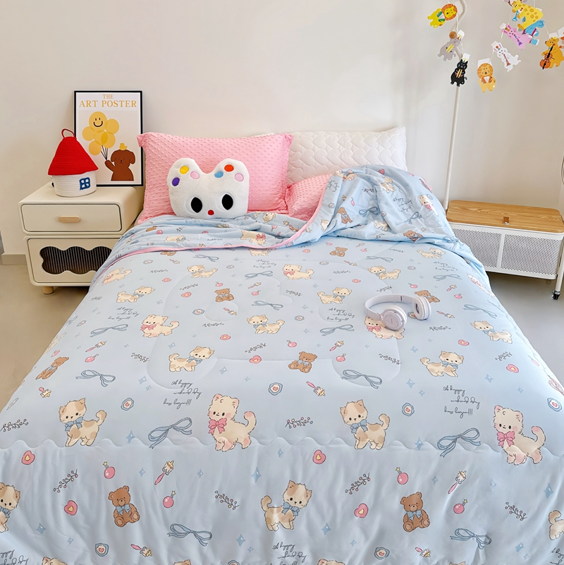 商品名称:兜米 2025夏季A类针织棉夏凉被小清新卡通双面针织棉空调被子被芯 宠物喵喵