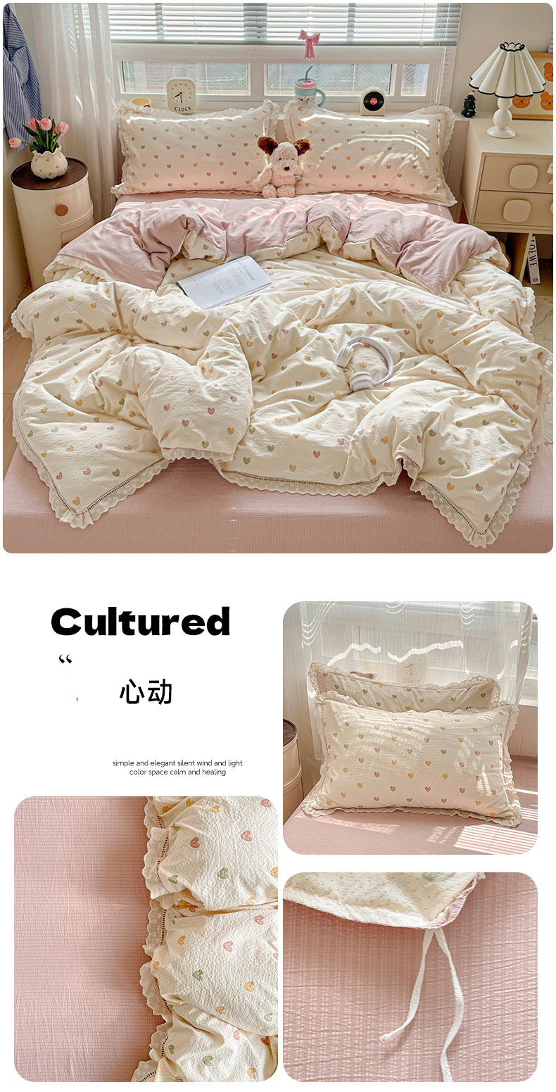 一比一 2026新款云感皱皱双层纱四件套-全棉花边款【控价99元销售】 心动