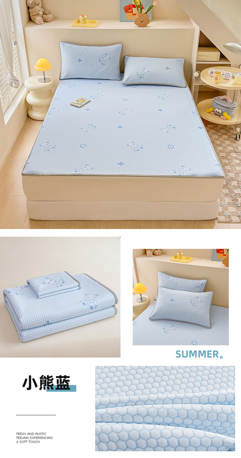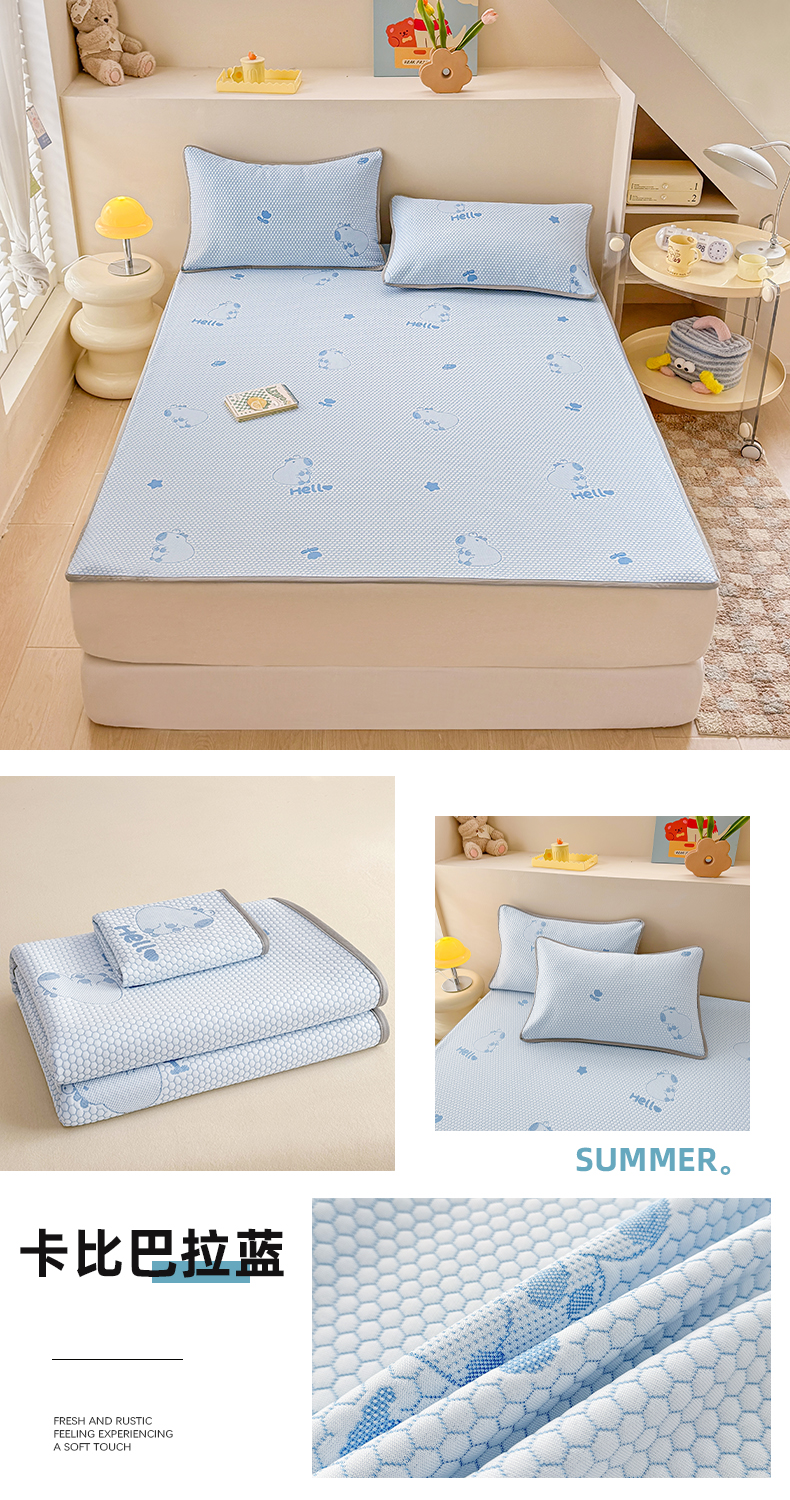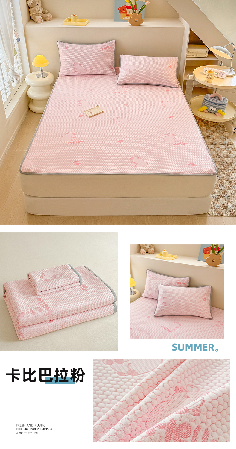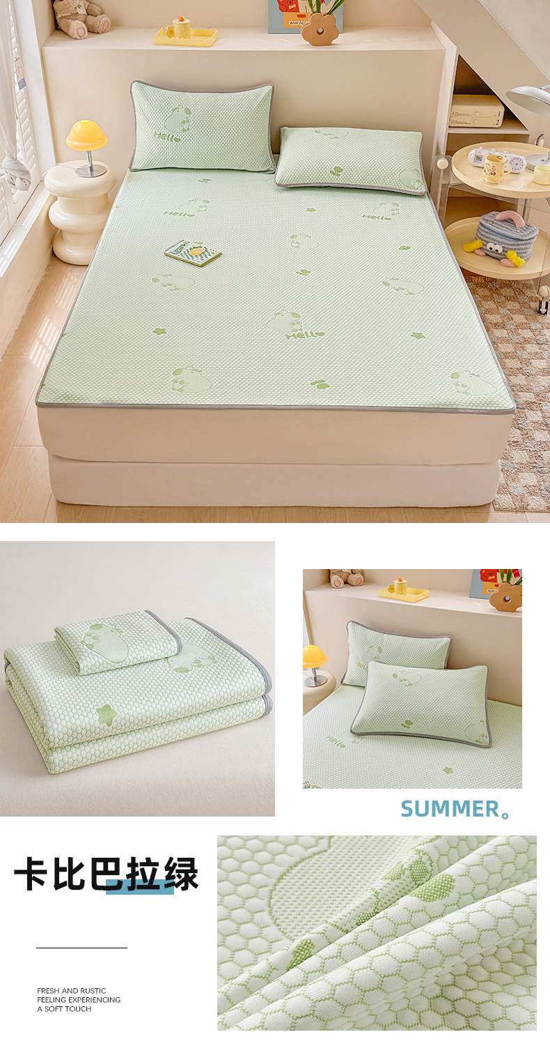 (总)2025新款A类直播凉感冰豆豆凉席凉豆豆软席三件套空调席冰丝席子单凉席两件套【量大从优】,卡比巴拉粉,卡皮巴拉蓝,卡皮巴拉绿,卡皮巴拉紫,小熊粉,小熊灰,小熊咖,小熊蓝,小熊绿,小熊紫,樱桃